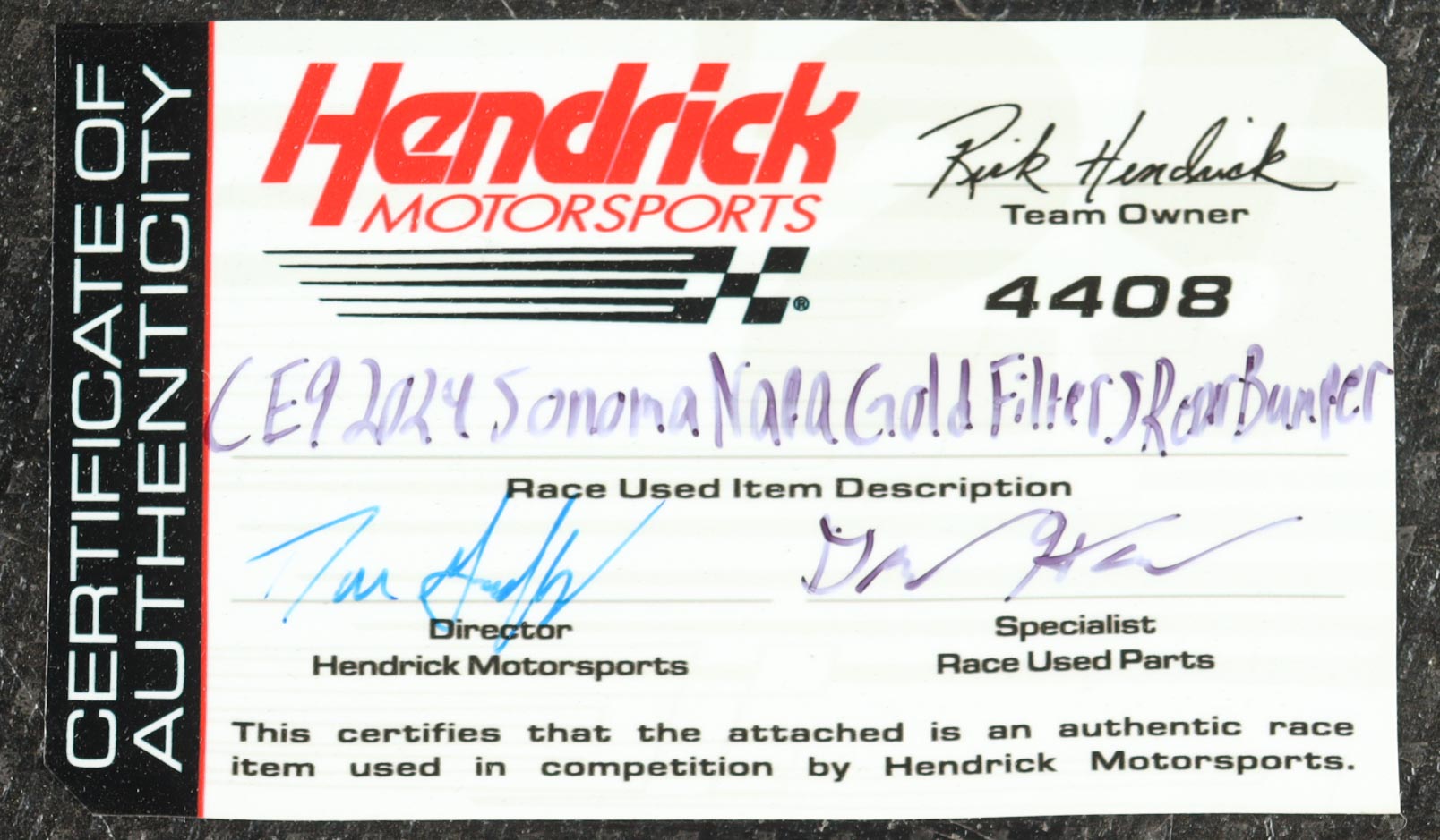 Authentication: Hendrick Motorsports COA