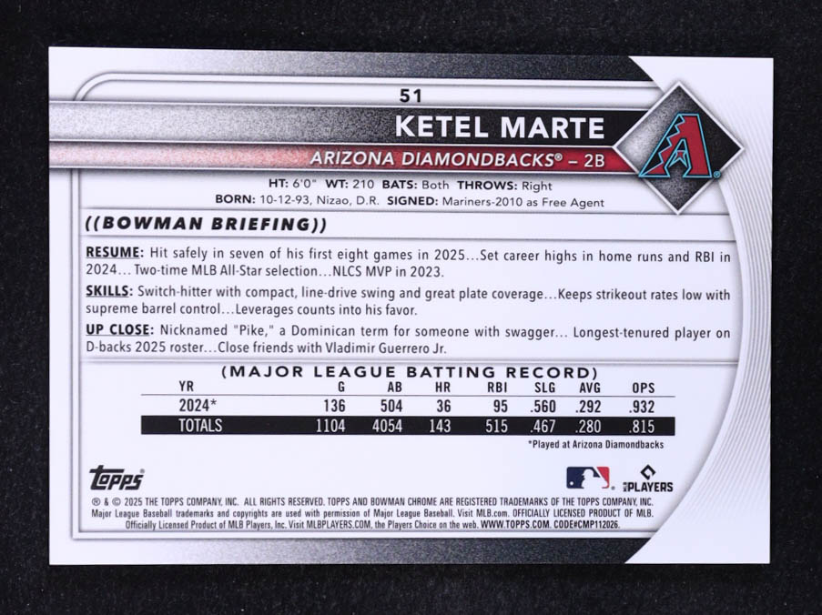 Ketel Marte 2025 Bowman Chrome Sapphire Orange Refractors #51 #12/25