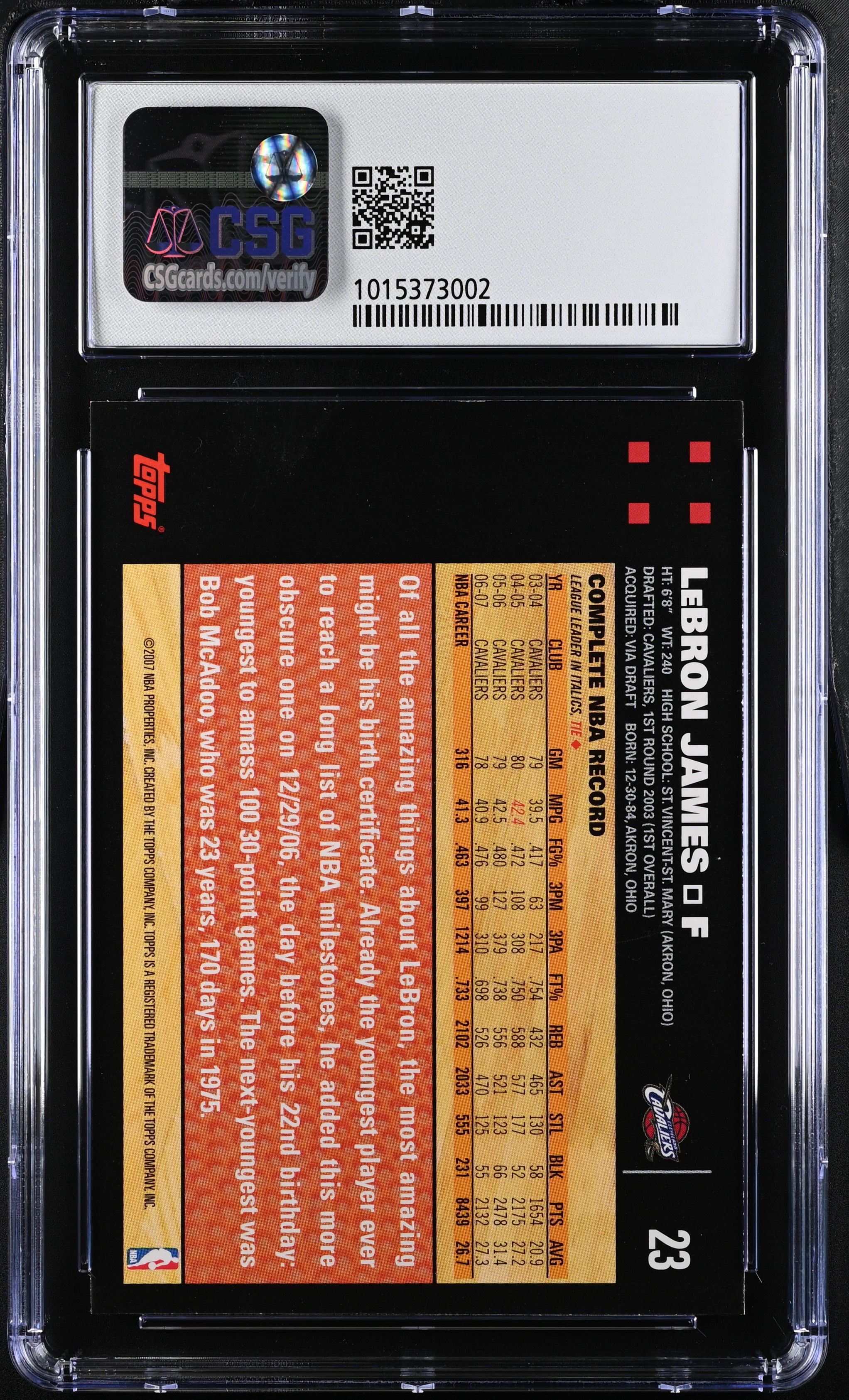 Card has been graded CSG 8 NM/Mint. Please see photos for more details regarding the condition of the card (Cleveland Cavaliers).