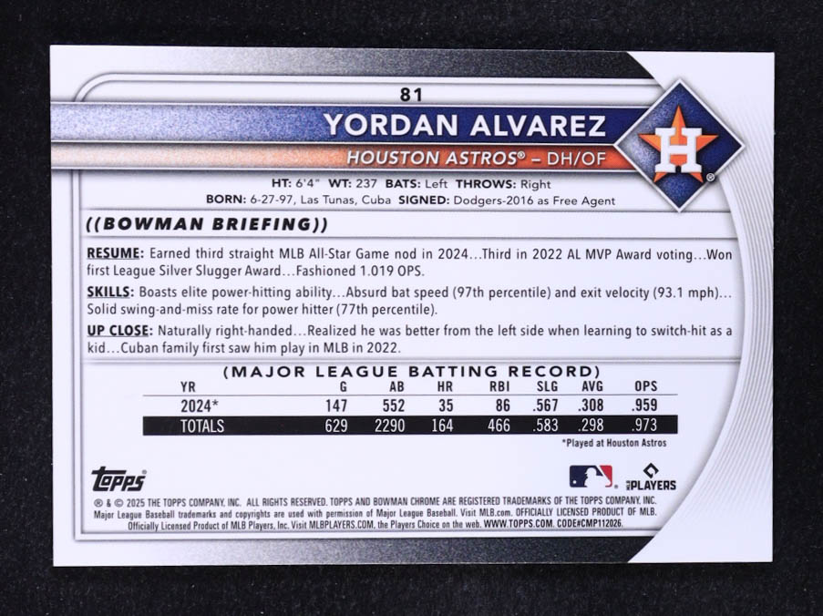 Yordan Alvarez 2025 Bowman Chrome Green Geometric Refractors #81 #45/99