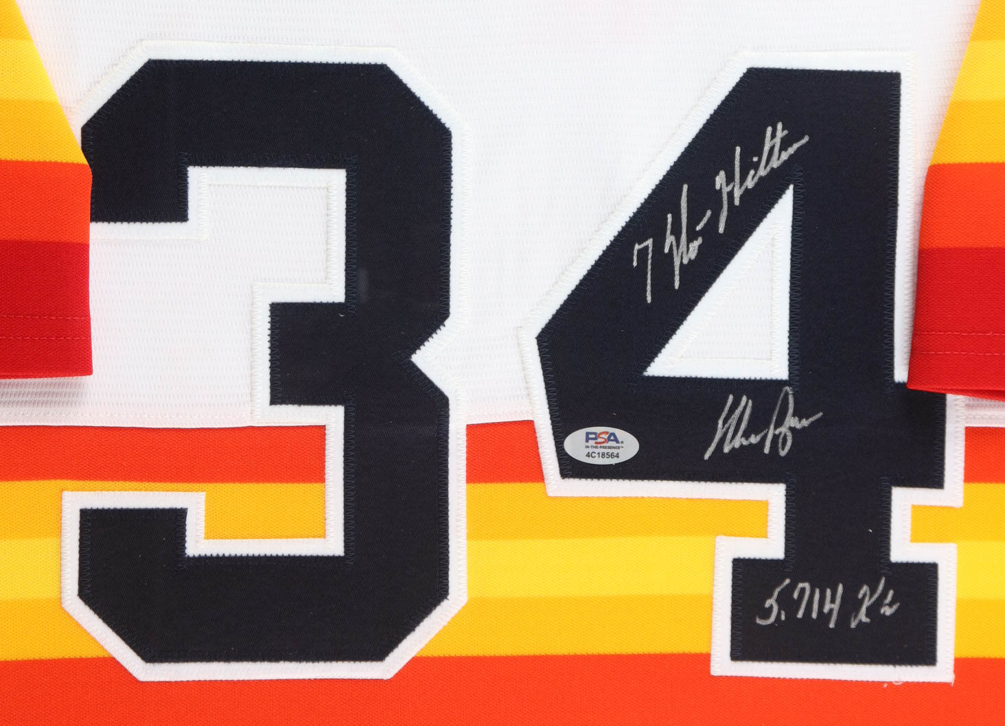 Nolan Ryan Signed Custom Framed Jersey Display Inscribed "7 No-Hitters" & "5,714 K's" with HOF Pin (PSA)