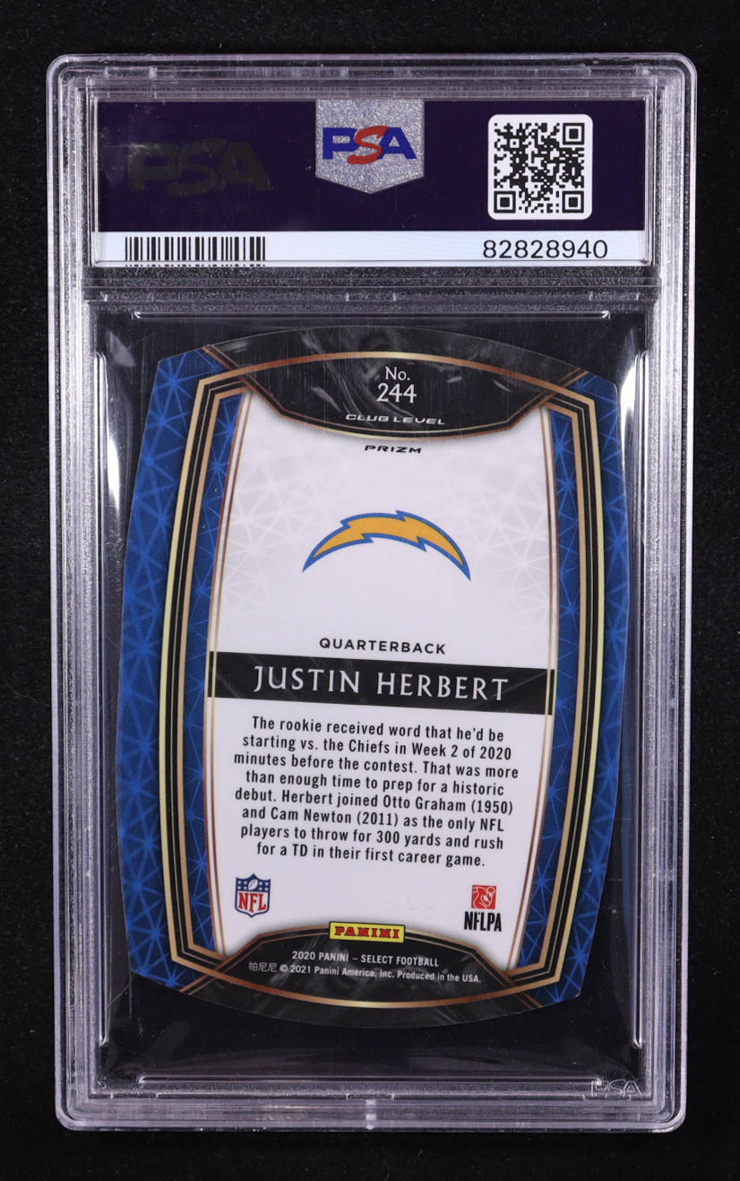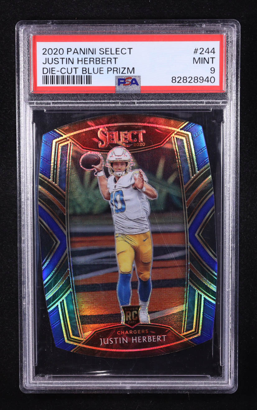 Justin Herbert 2020 Panini Select Club Level Die-Cut Blue Prizm #244 RC (PSA 9)