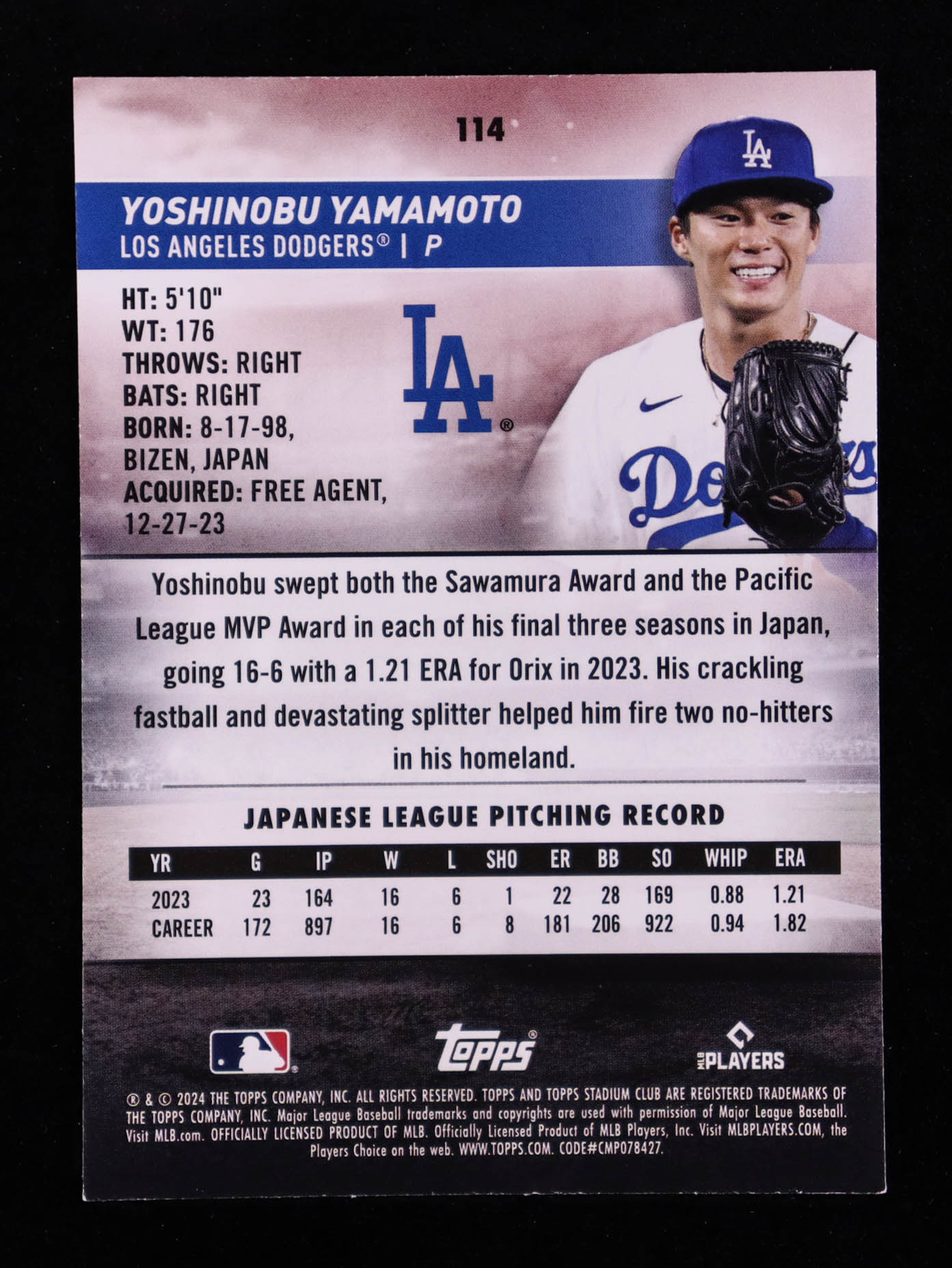 Yoshinobu Yamamoto 2024 Stadium Club Red Foil #114 RC