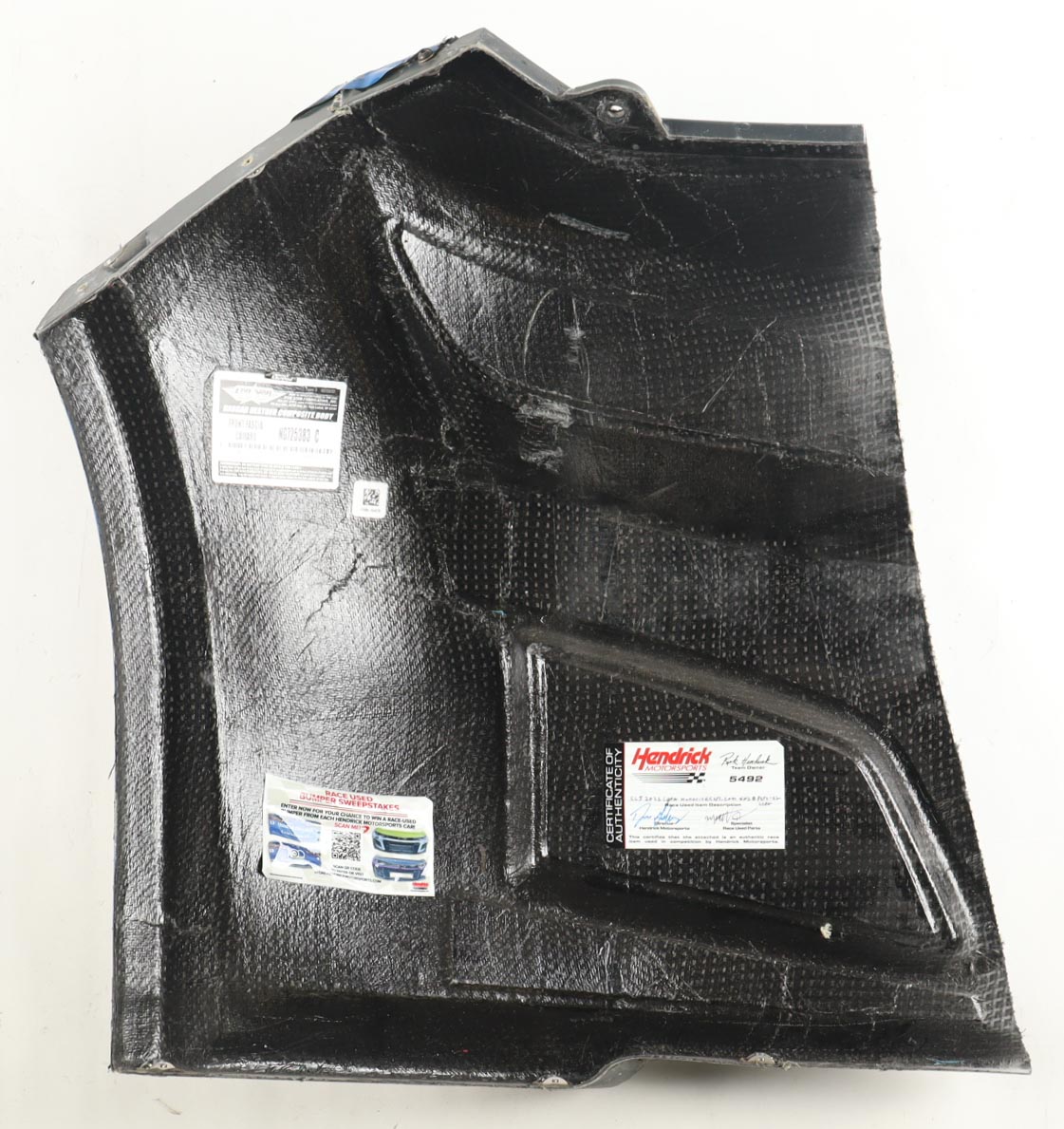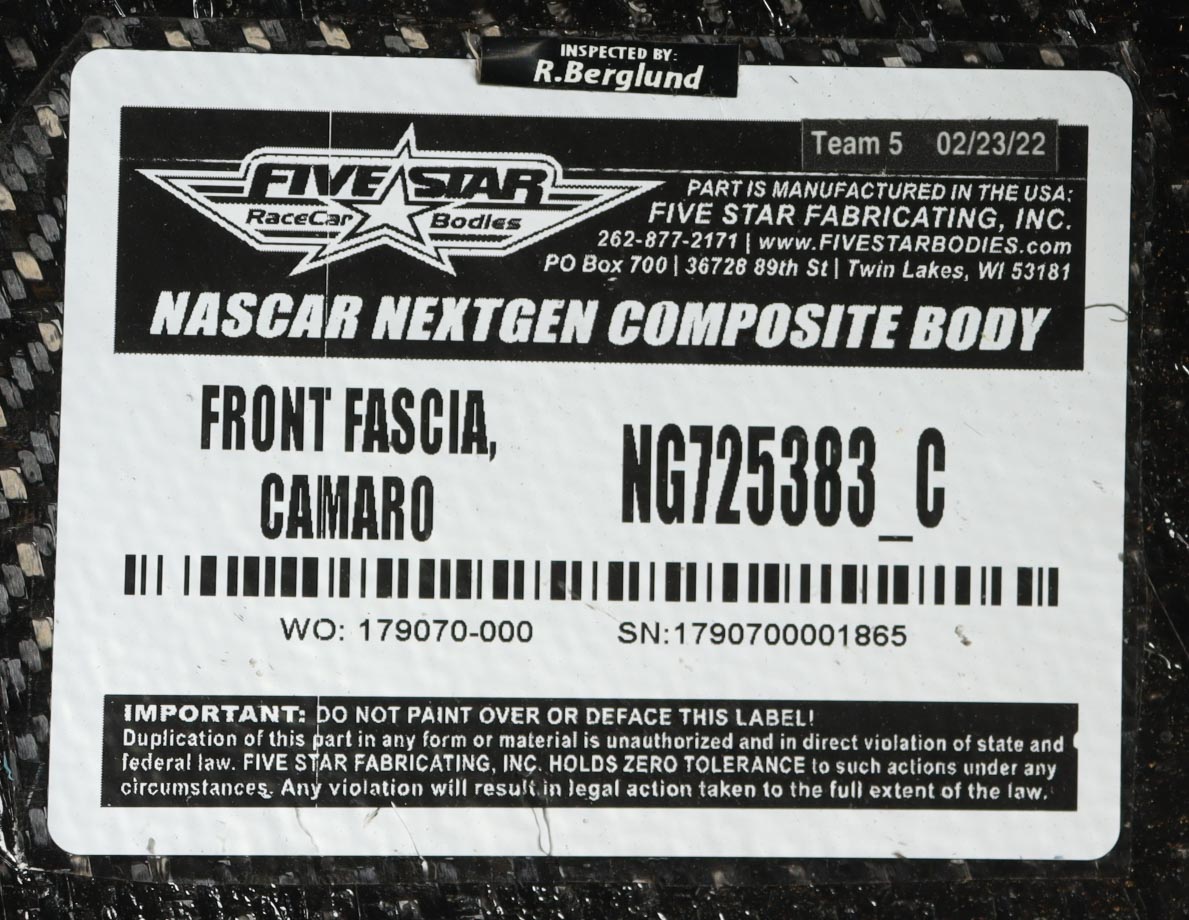 Race-Used Left Nose Partial Car Piece from Kyle Larson's #5 HendrickCars.com used during the 2022 Circuit of the Americas. Authenticated by the Director and Race Used Parts Specialist at Hendrick Motorsports.