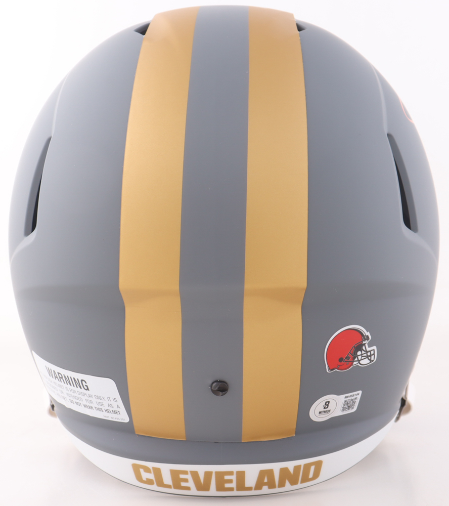 Riddell Cleveland Browns full-size replica Slate Alternate Speed helmet. Hand-signed and inscribed by Johnny Manziel.