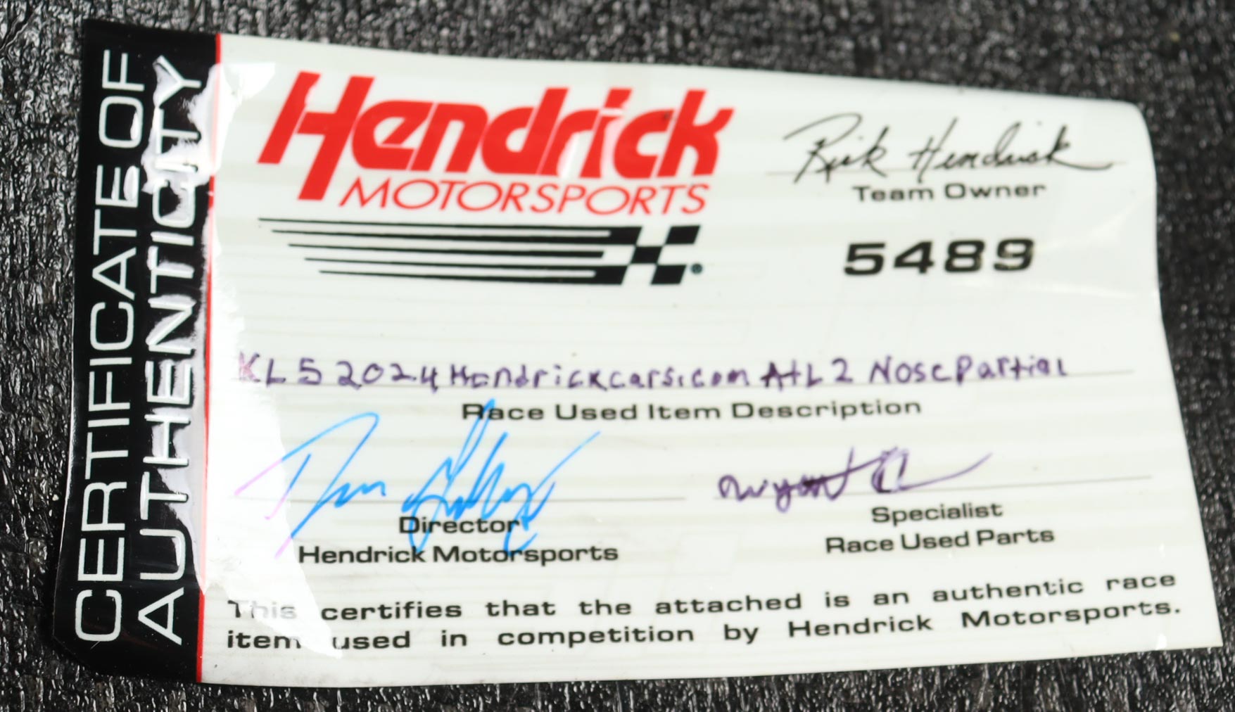 Authentication: Hendrick Motorsports COA
