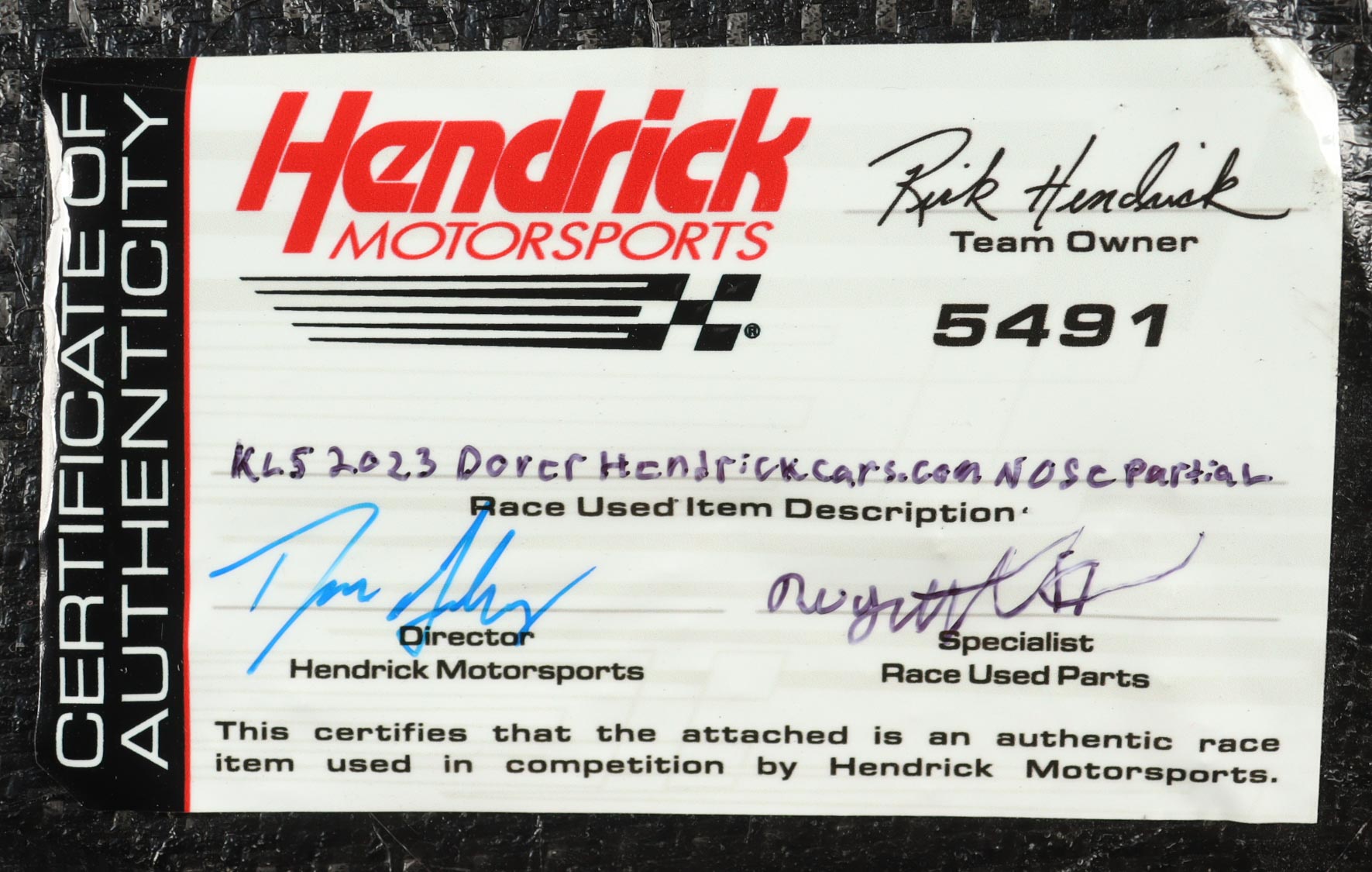 Authentication: Hendrick Motorsports COA