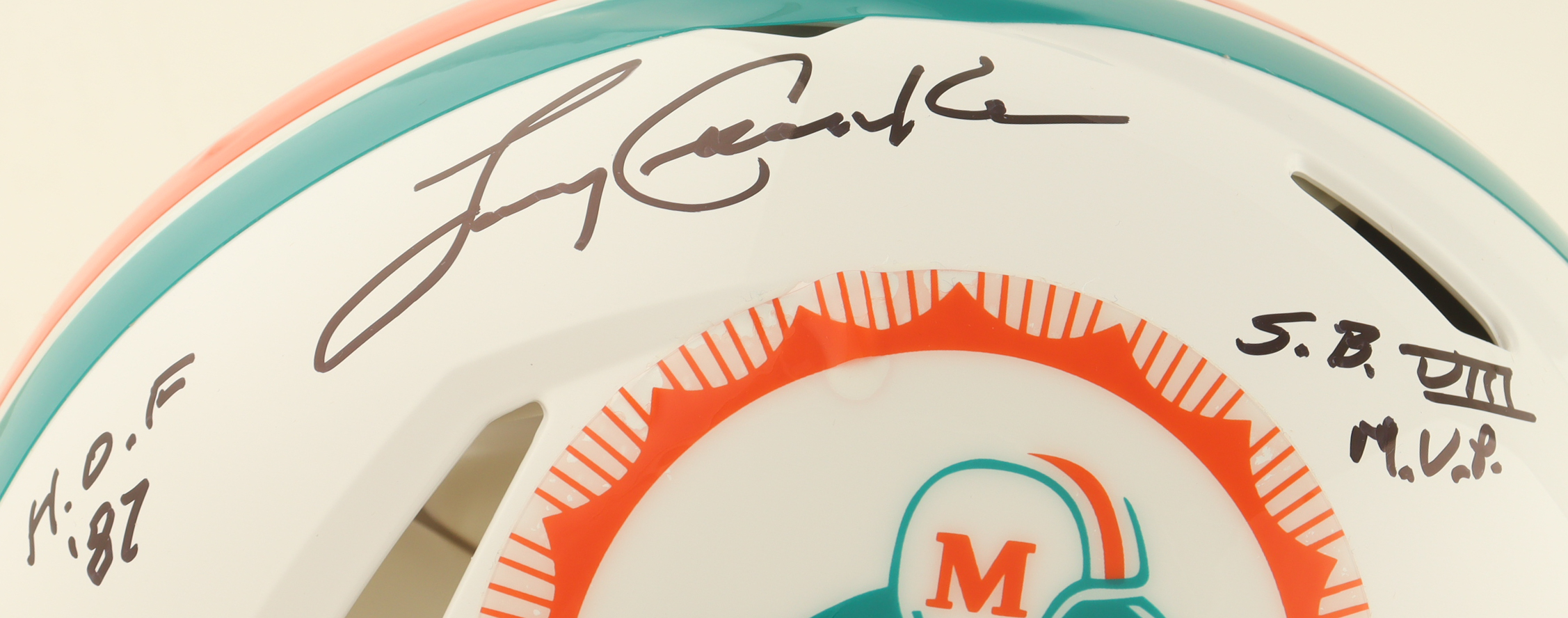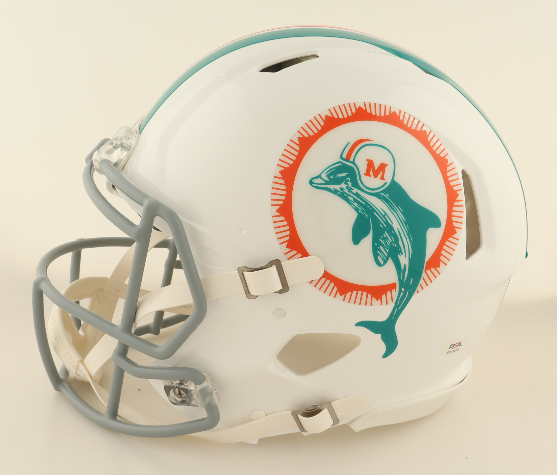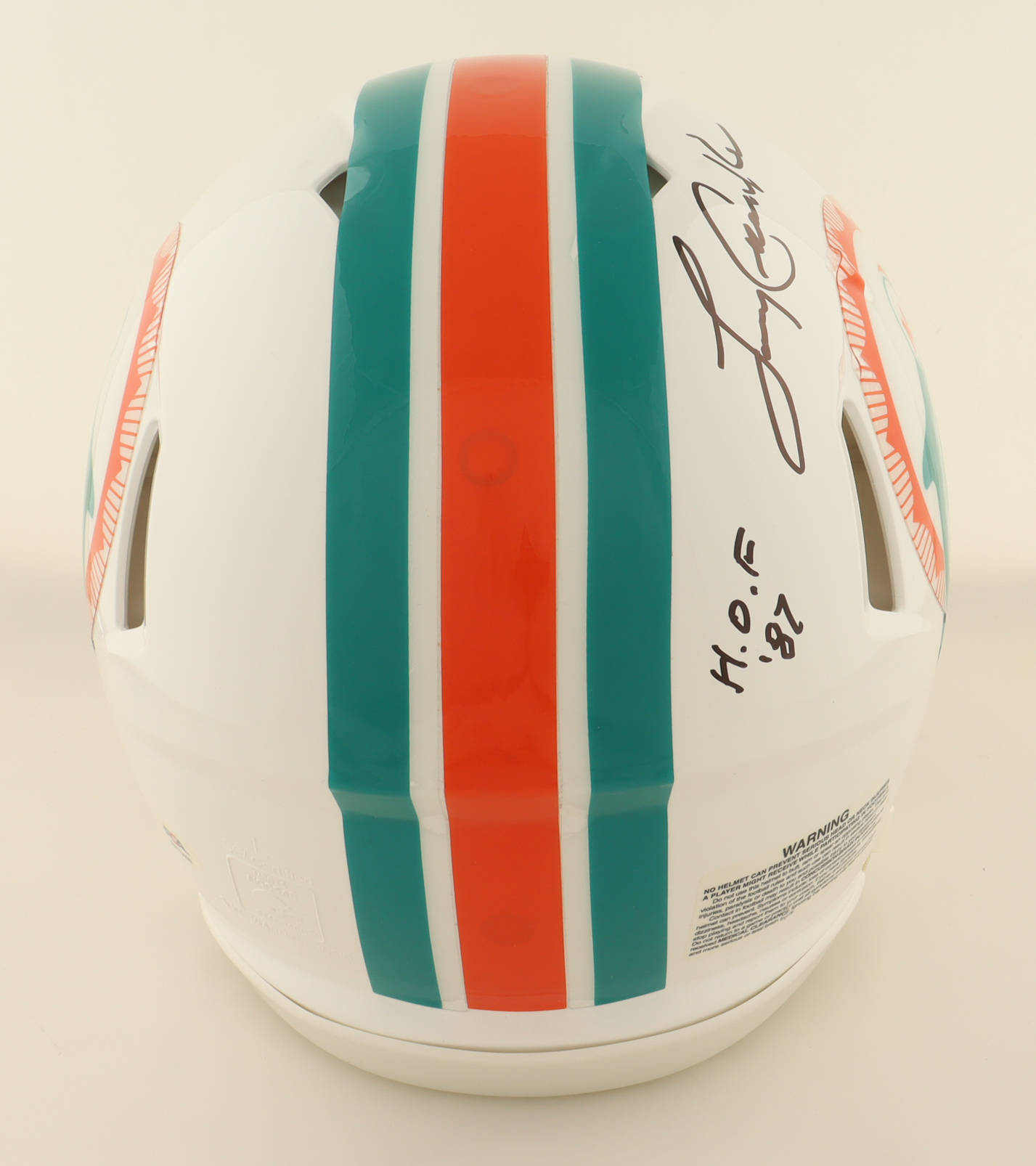 Riddell Miami Dolphins full-size authentic on-field Speed helmet. Hand-signed and inscribed by Larry Csonka (HOF).