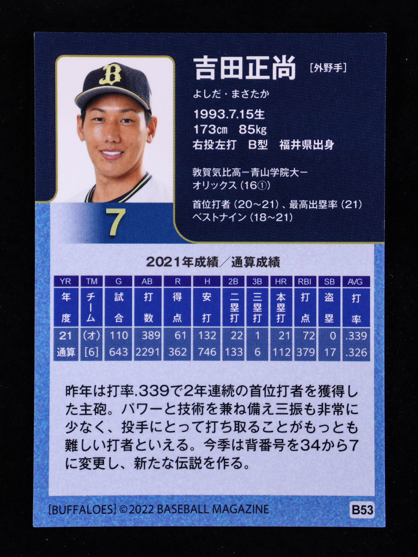 Masataka Yoshida 2022 BBM Orix Buffaloes #B53 RC