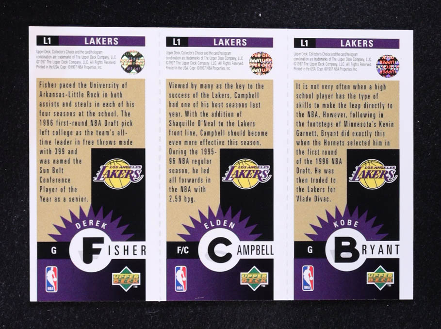 Kobe Bryant RC / Elden Campbell / Derek Fisher RC 1996-97 Collector's Choice Los Angeles Lakers #L1