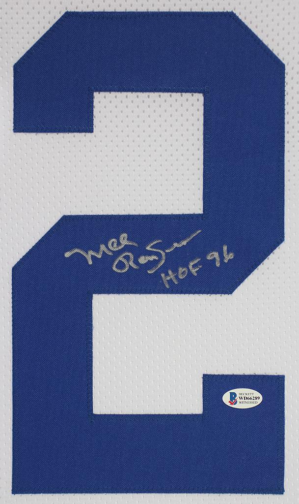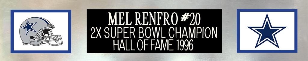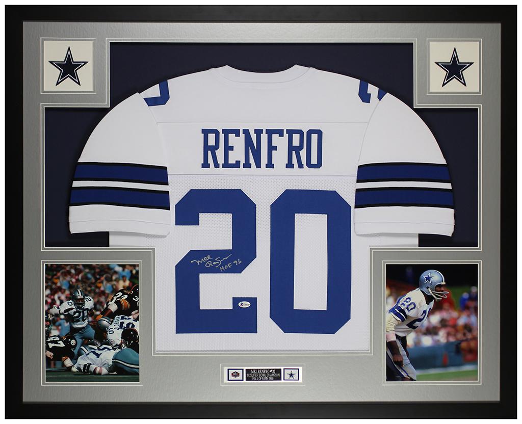 Custom frame measures 35" x 43" in size and features a jersey that has been hand signed and inscribed by Mel Renfro (HOF).