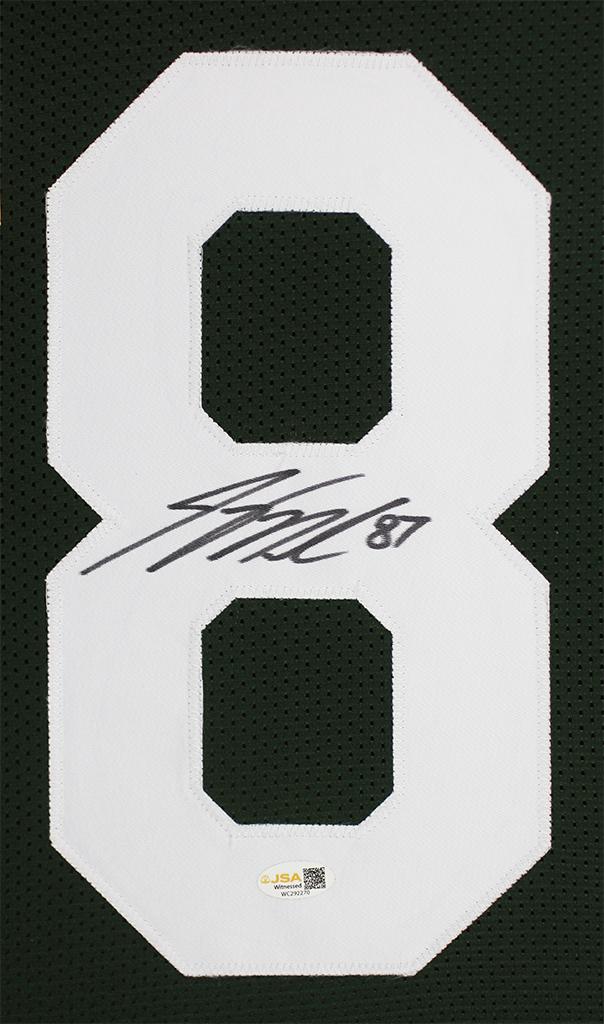 Custom frame measures 35" x 43" in size and features a jersey that has been hand-signed by Jordy Nelson.