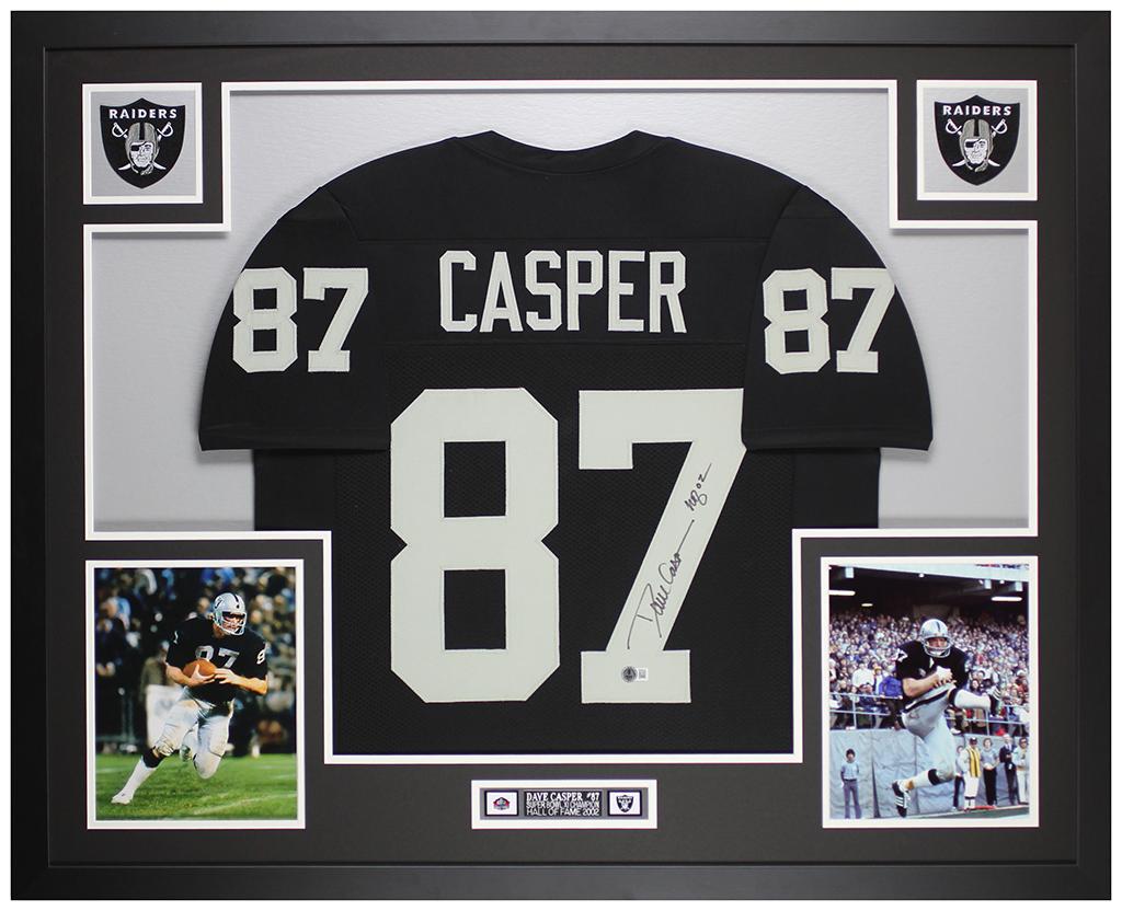 Custom frame measures 35" x 43" in size and features a jersey that has been hand-signed and inscribed by Dave Casper (HOF).