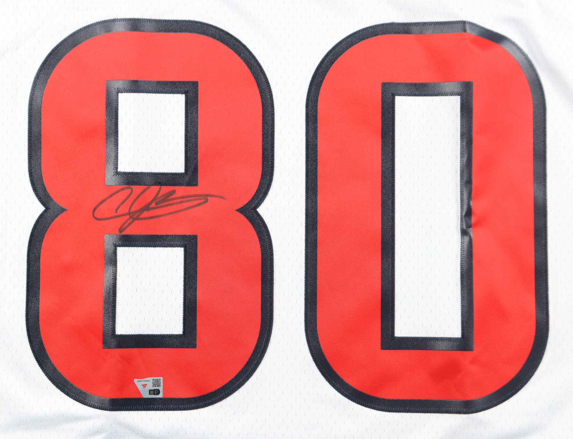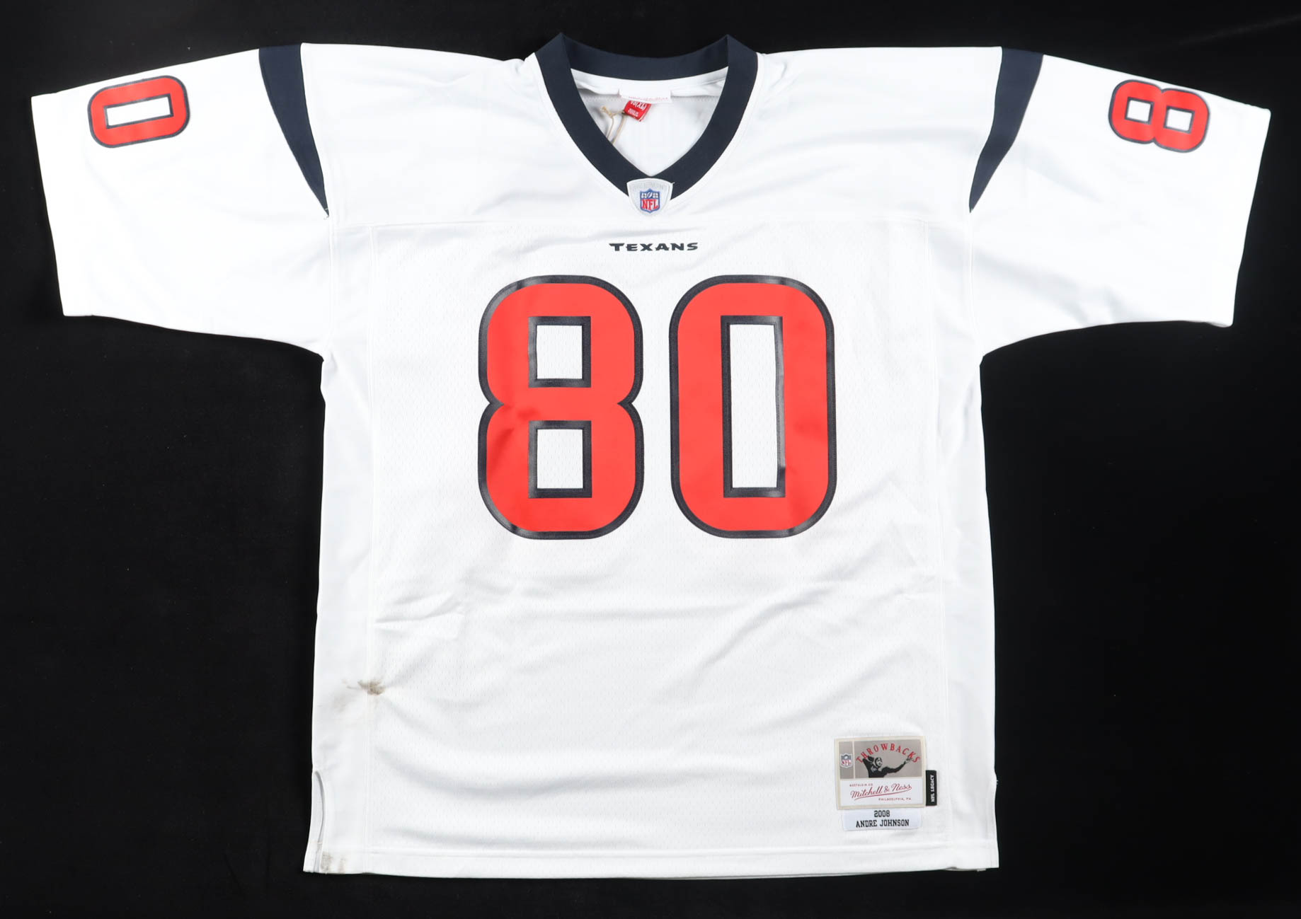 Mitchell & Ness jersey with everything sewn on, size 48 (XL). Hand-signed by Andre Johnson (Houston Texans). Please note, there is staining on the front of the jersey.
