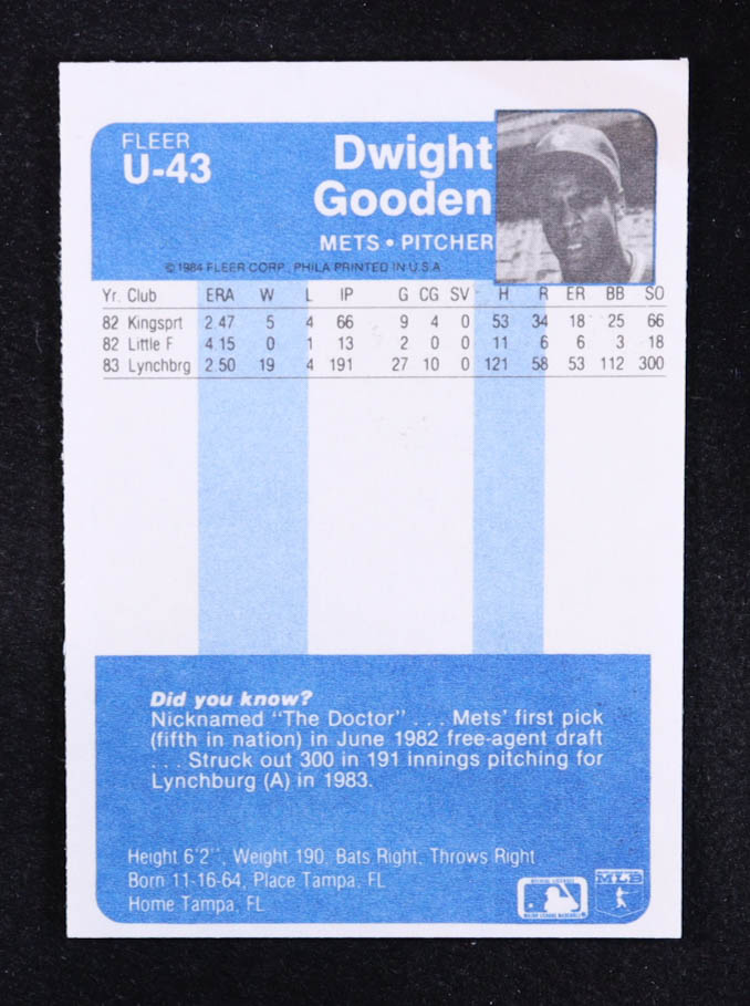 Dwight Gooden 1984 Fleer Update #U43 RC