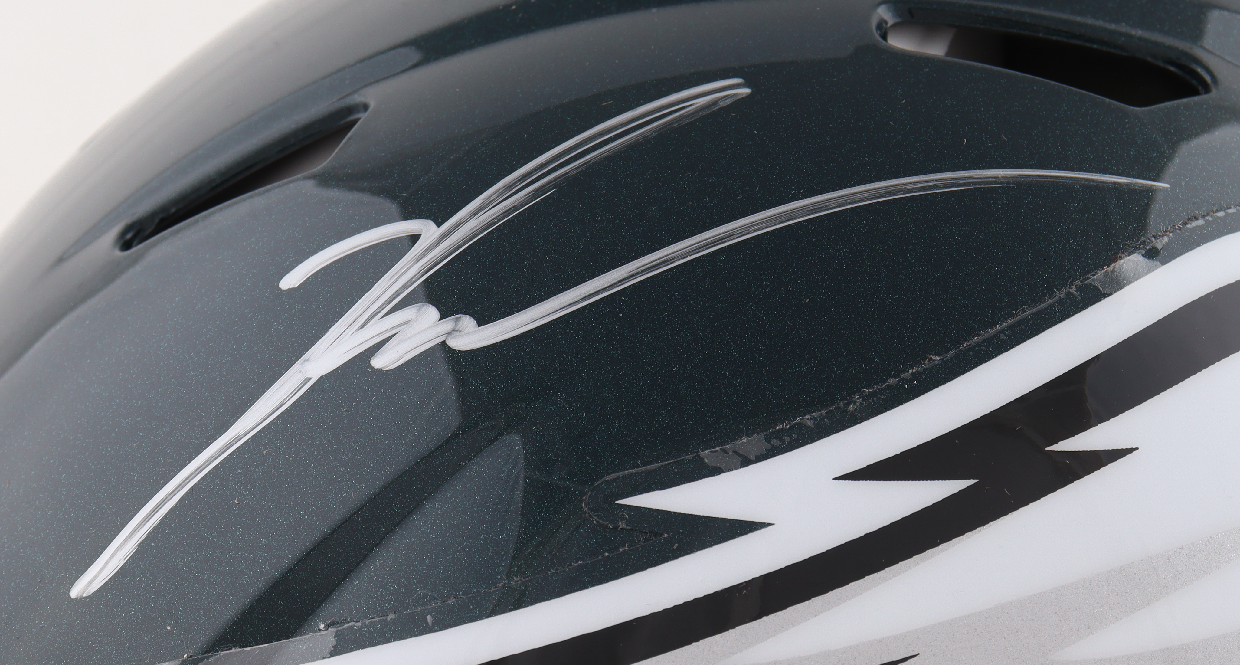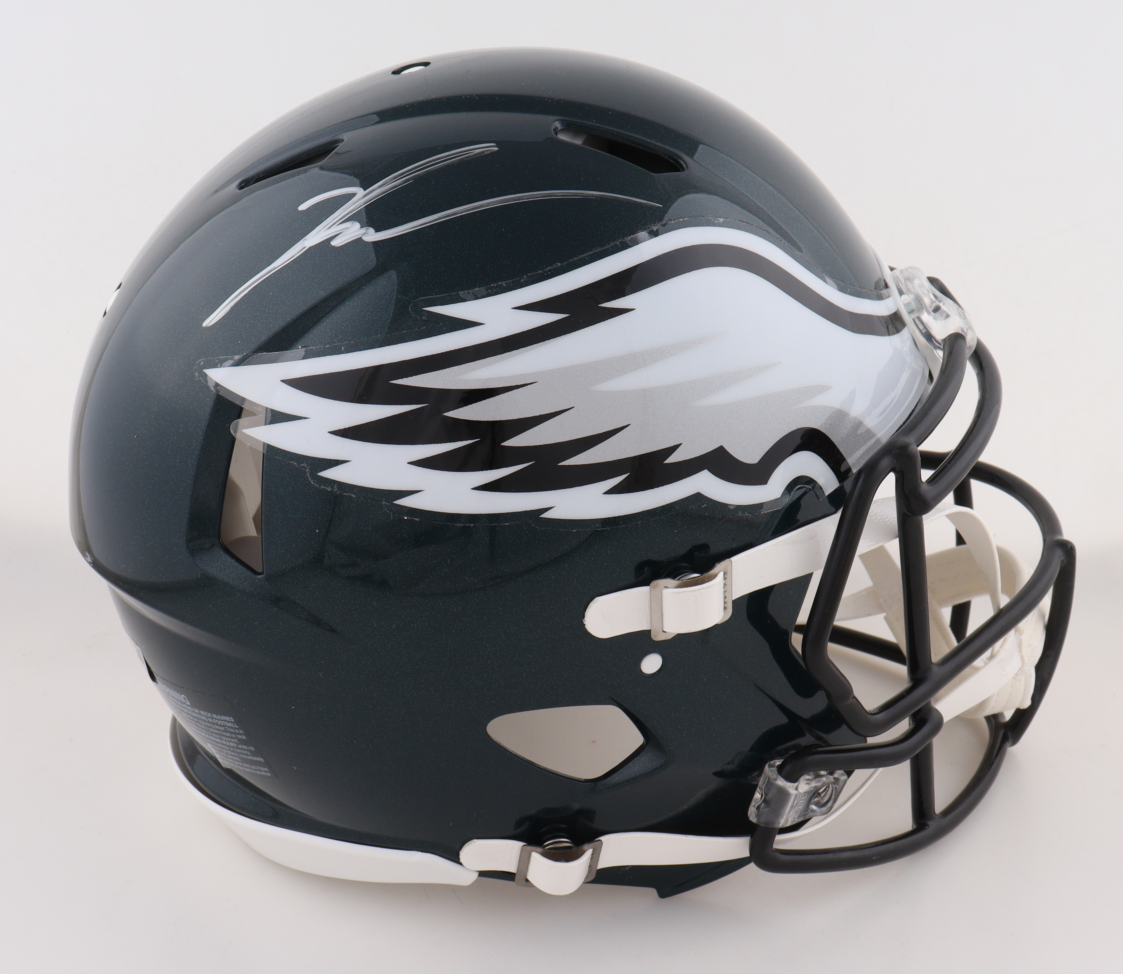 Riddell Philadelphia Eagles Full-Size authentic on-field Speed helmet has been hand-signed by Jalen Carter.