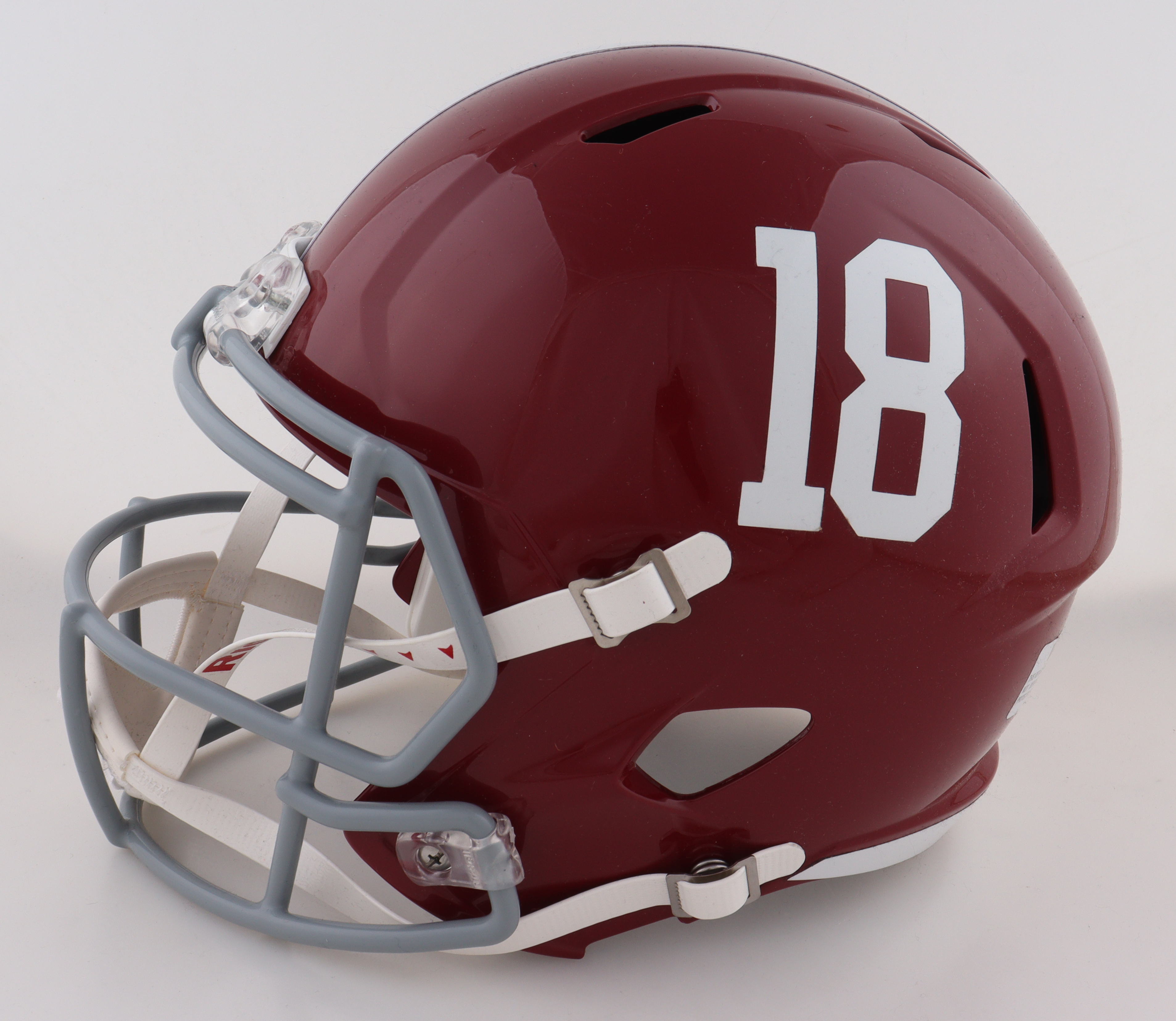 Riddell Alabama Crimson Tide full-size replica Speed helmet. Hand-signed by Nick Saban. Please note, the signature is smudged. See photos for more detail regarding the condition of the item.