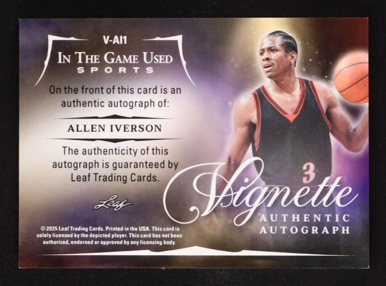Allen Iverson 2025 Leaf In The Game Used Vignette Authentic Sparkle Autographs #VAI1 #1/6