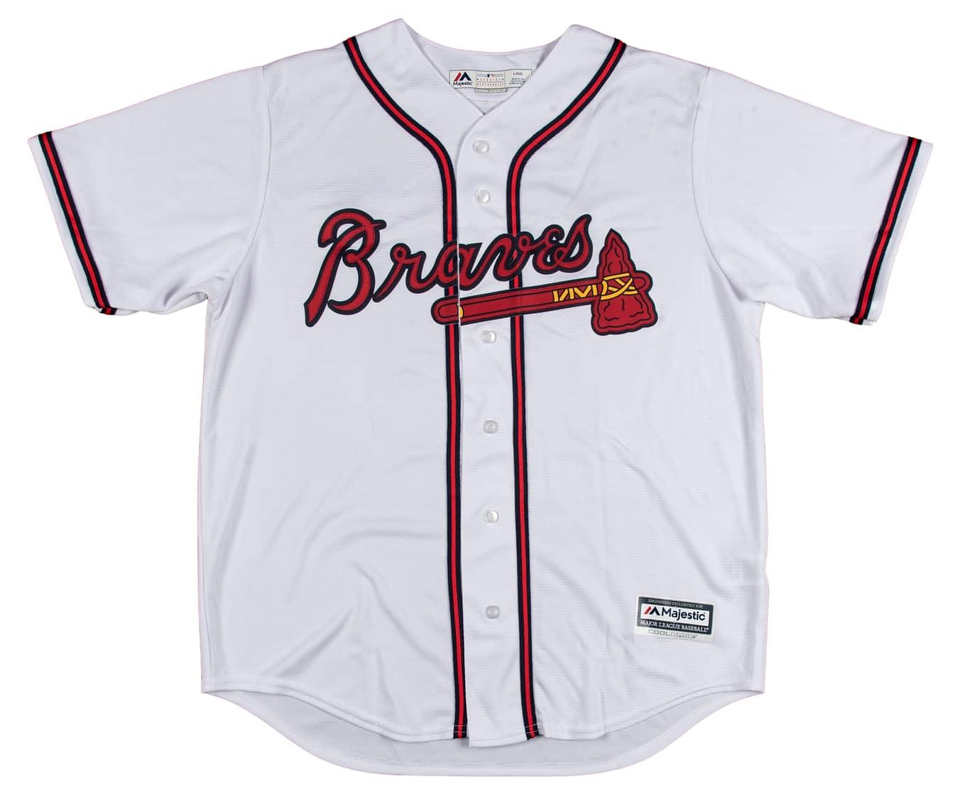 Majestic jersey with everything pressed on, size L. Hand-signed and inscribed by Ronald Acuna Jr. (Atlanta Braves).
