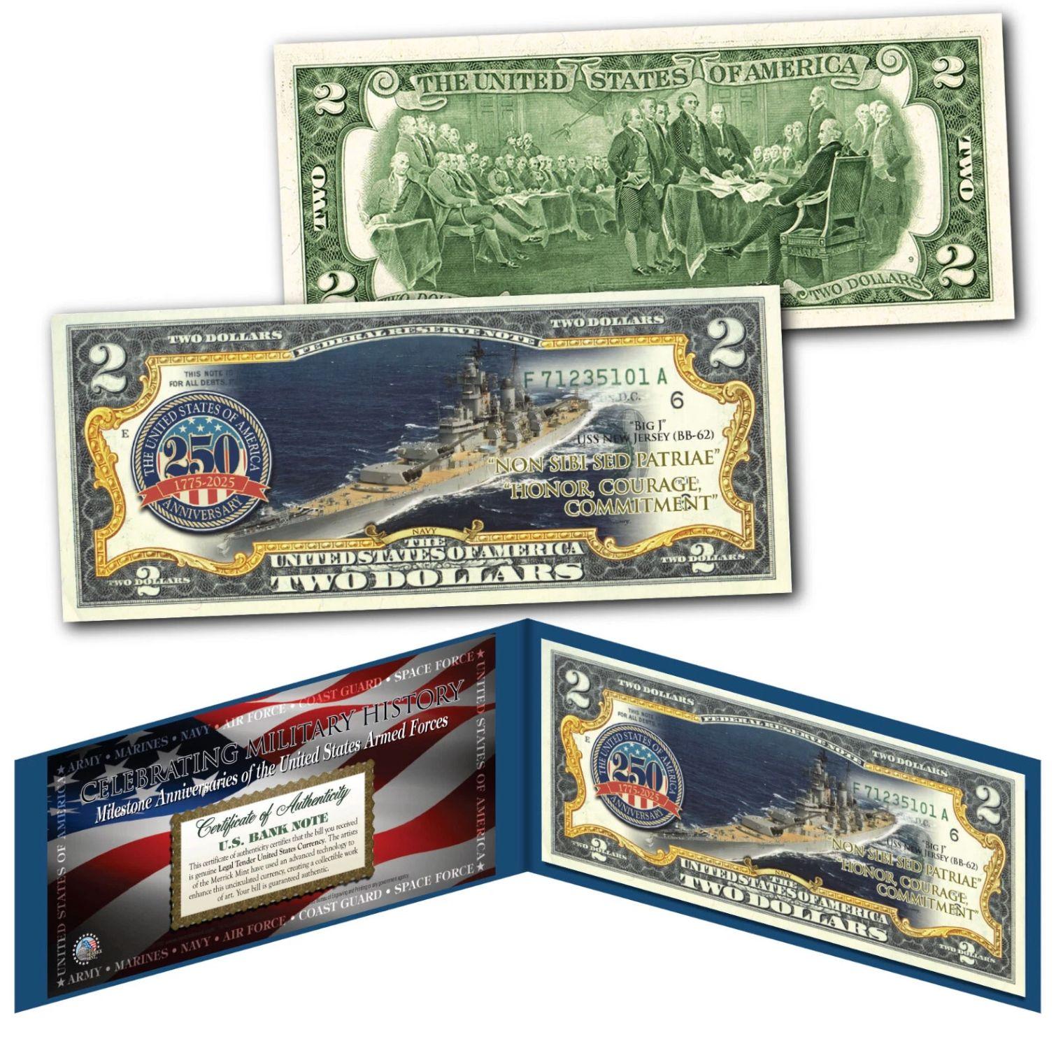 Navy "Milestones of the U.S. Armed Forces" 250th Anniversary Genuine U.S. $2 Bill
