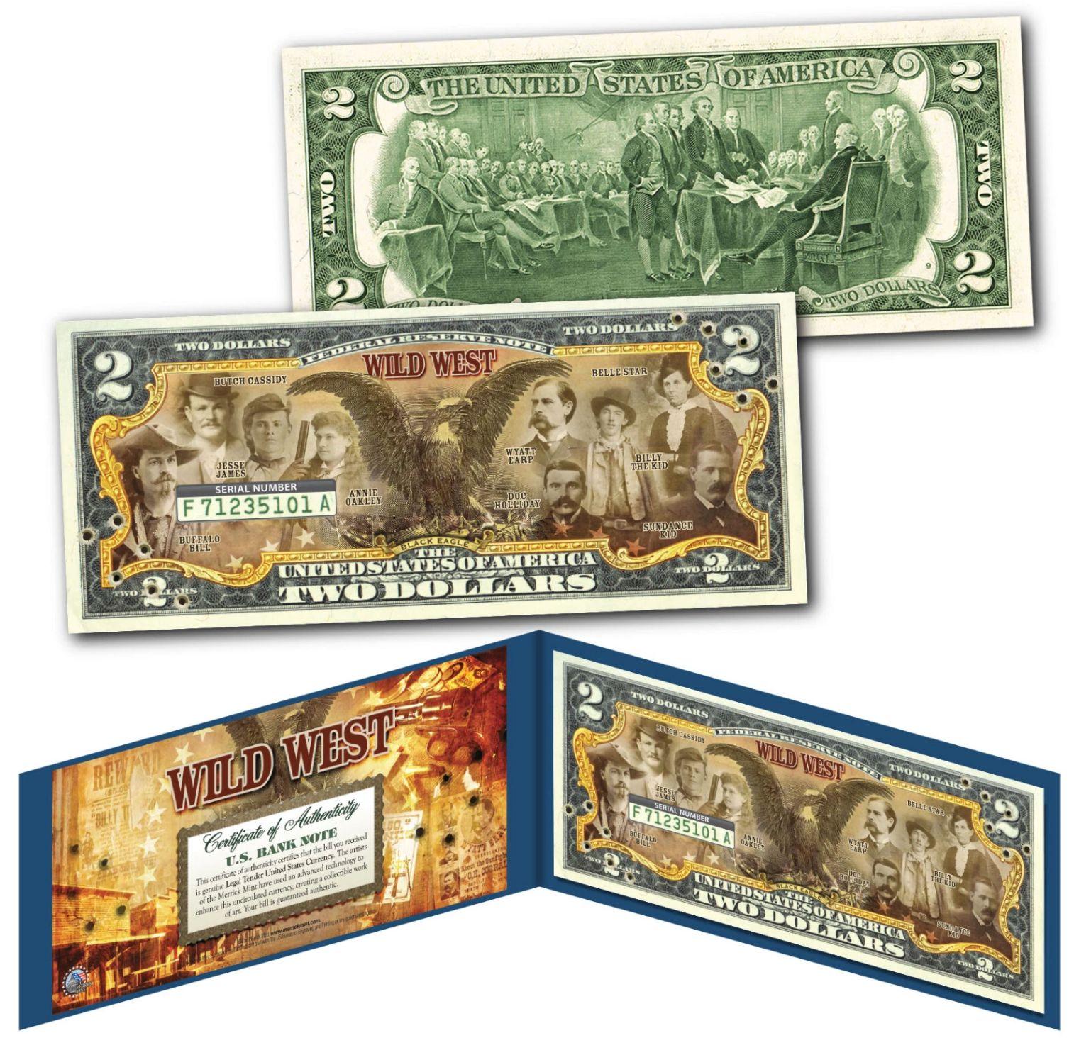 Wild West "Iconic Figures: American Frontier Outlaws" Black Eagle Genuine $2 Bill