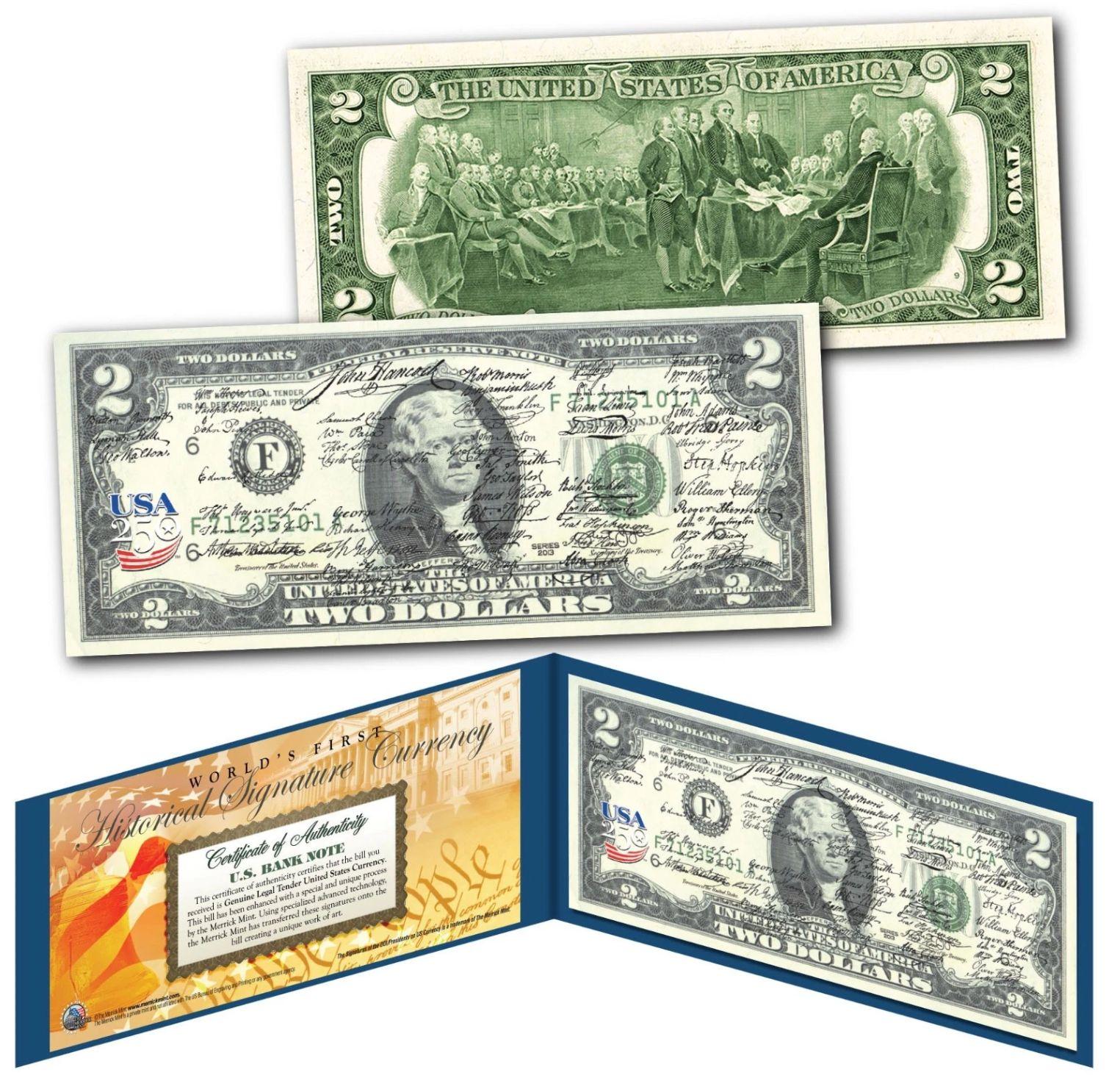 Historical Signatures "Declaration of Independence" America 250 Genuine US $2 Bill