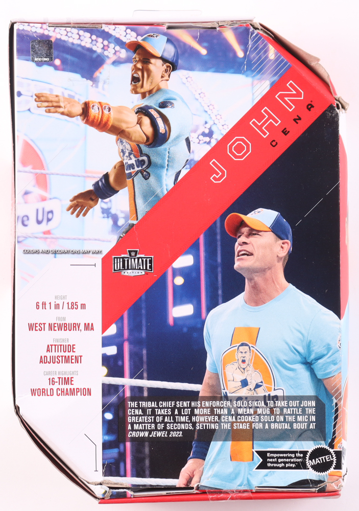 Mattel WWE Ultimate Edition action figure. Hand-signed on the box by John Cena. Please note the creasing and tearing on the packaging.