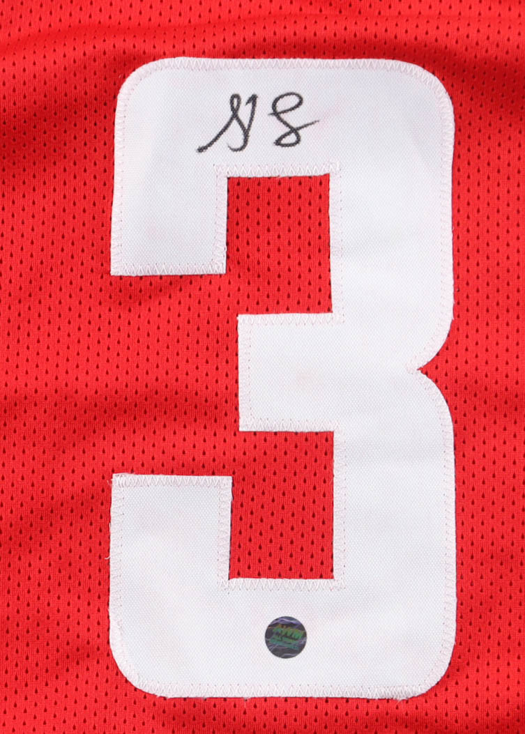 Custom jersey with everything sewn on, size XL. Hand-signed by Steve Francis. Please note, glue is visible through the players name and reverse number.
