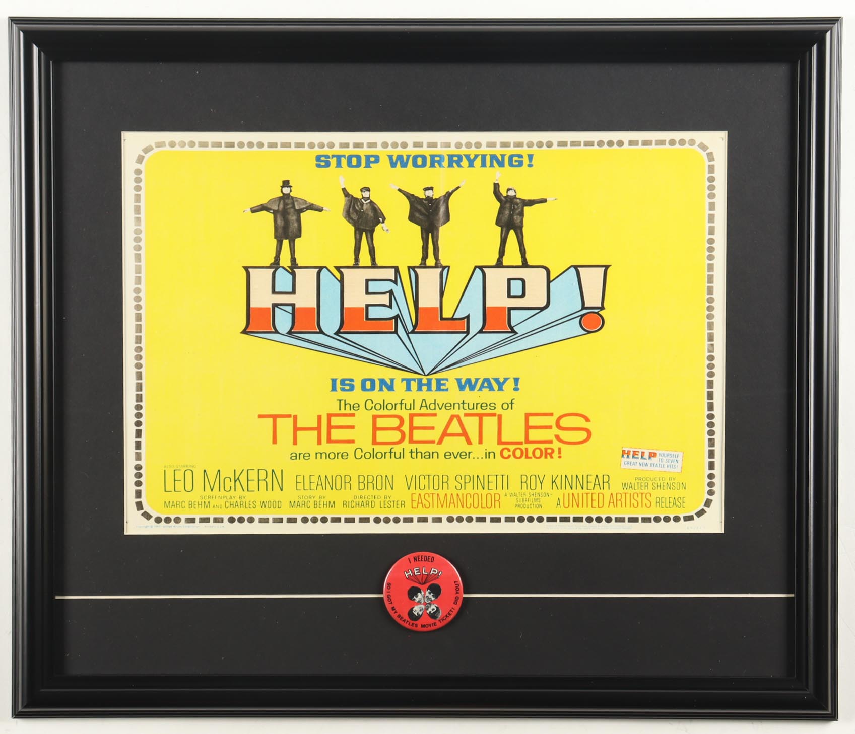 The Beatles Custom Framed "Help!" Photo Display with Vintage Lapel Beatles Pin