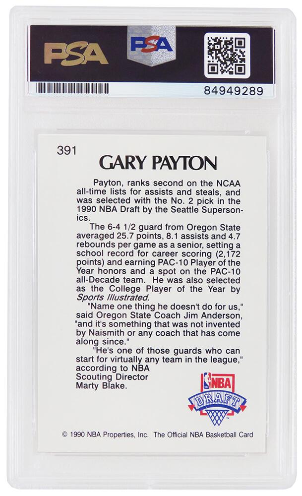 Gary Payton Signed 1990-91 Hoops #391 LS RC (PSA)