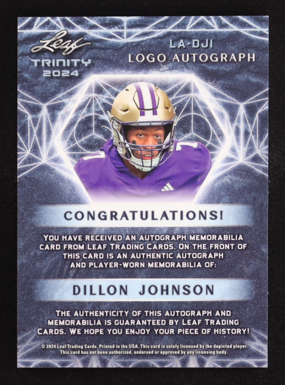 Dillon Johnson 2024 Leaf Trinity Logo Autographs Black Gold #LADJ1 #1/1 RC