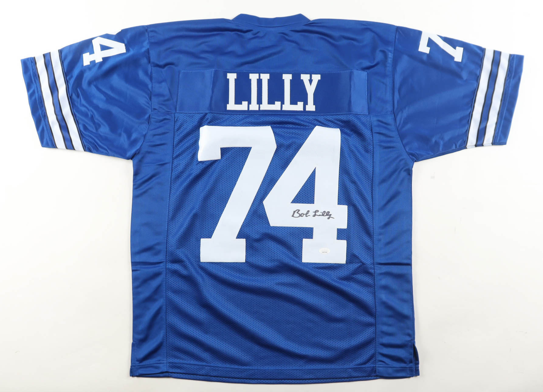 Custom jersey. Everything sewn on, size XL. Hand-signed by Bob Lilly (HOF).