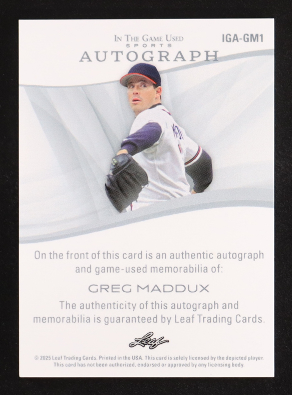 Greg Maddux 2025 Leaf In The Game Used Autograph Memorabilia Holo Blue Game-Used #IGA-GM1 #2/35