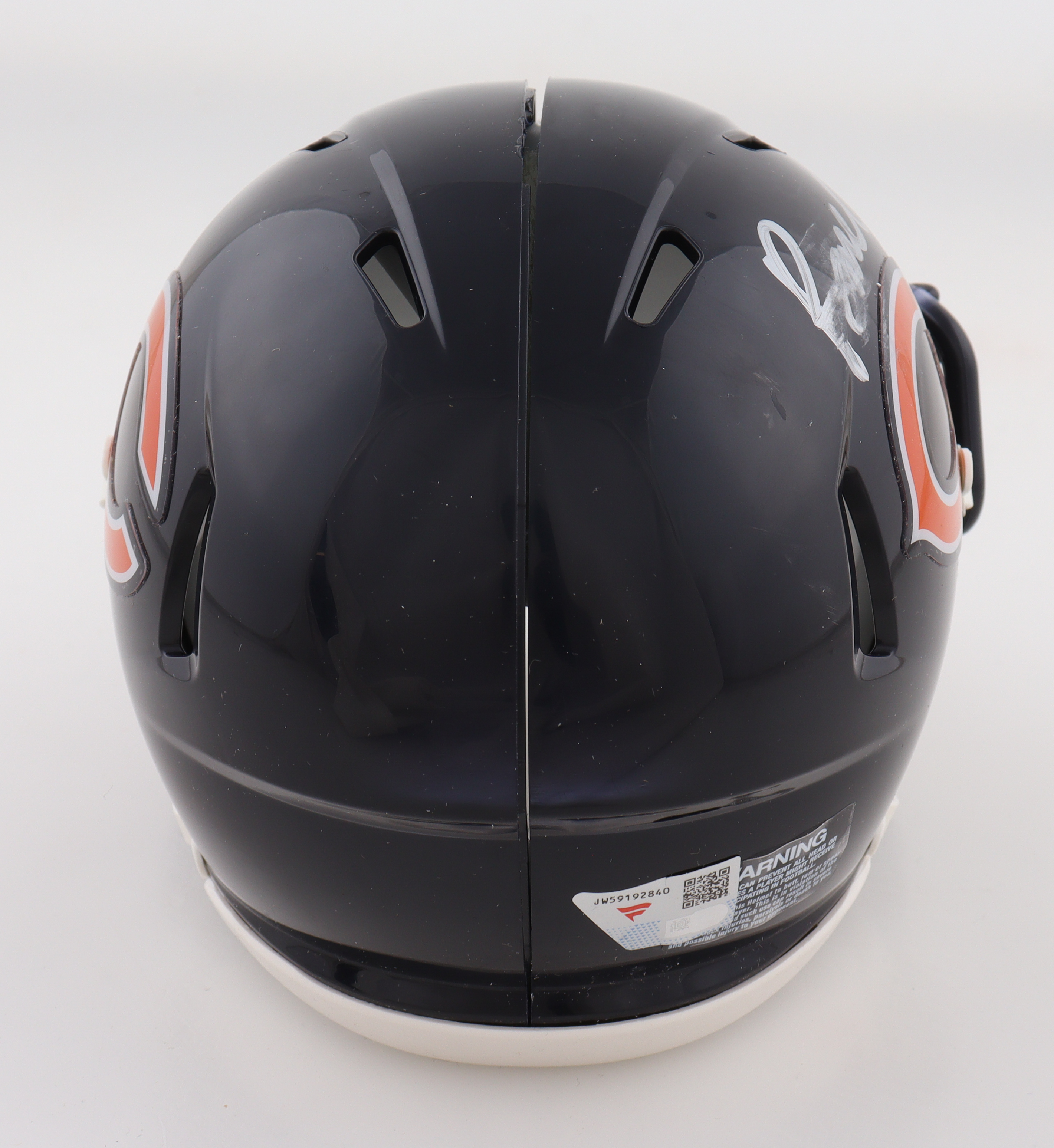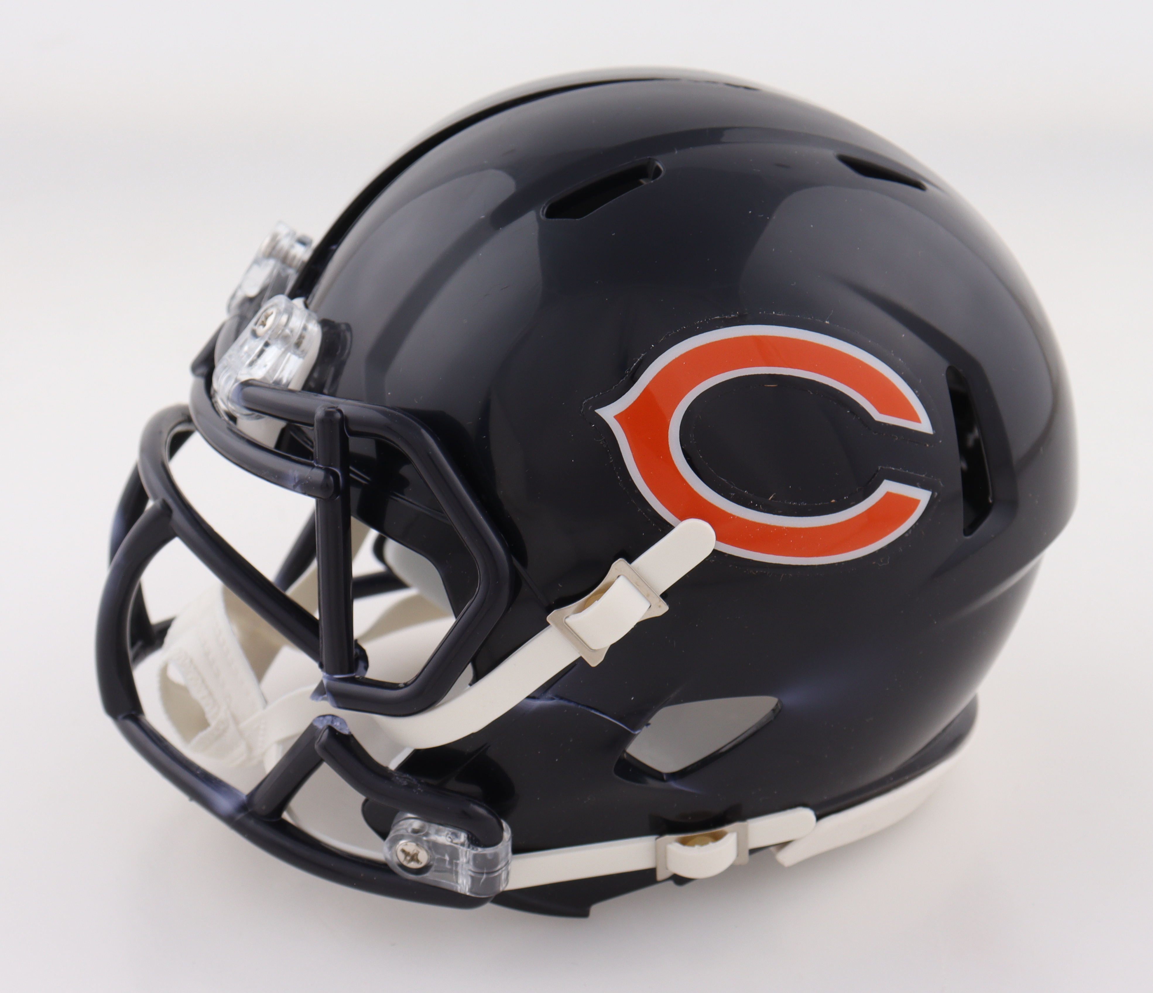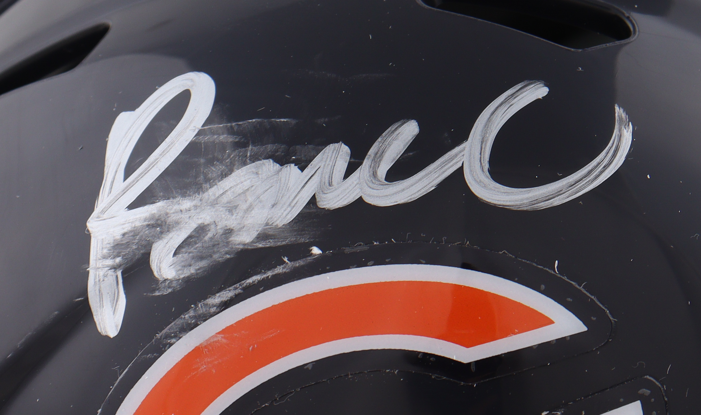 Riddell Chicago Bears Speed mini helmet. Hand-signed by Rome Odunze. Please note that the helmet shows signs of damage all around as well as the signature showing signs of smearing and smudging.