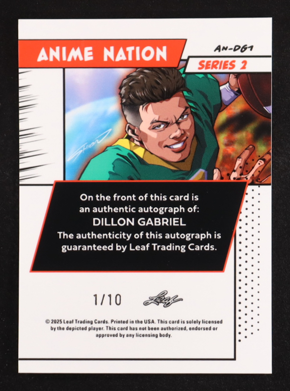 Dillon Gabriel 2025 Leaf Anime Nation Autographs Silver #AN-DG1 #1/10 RC