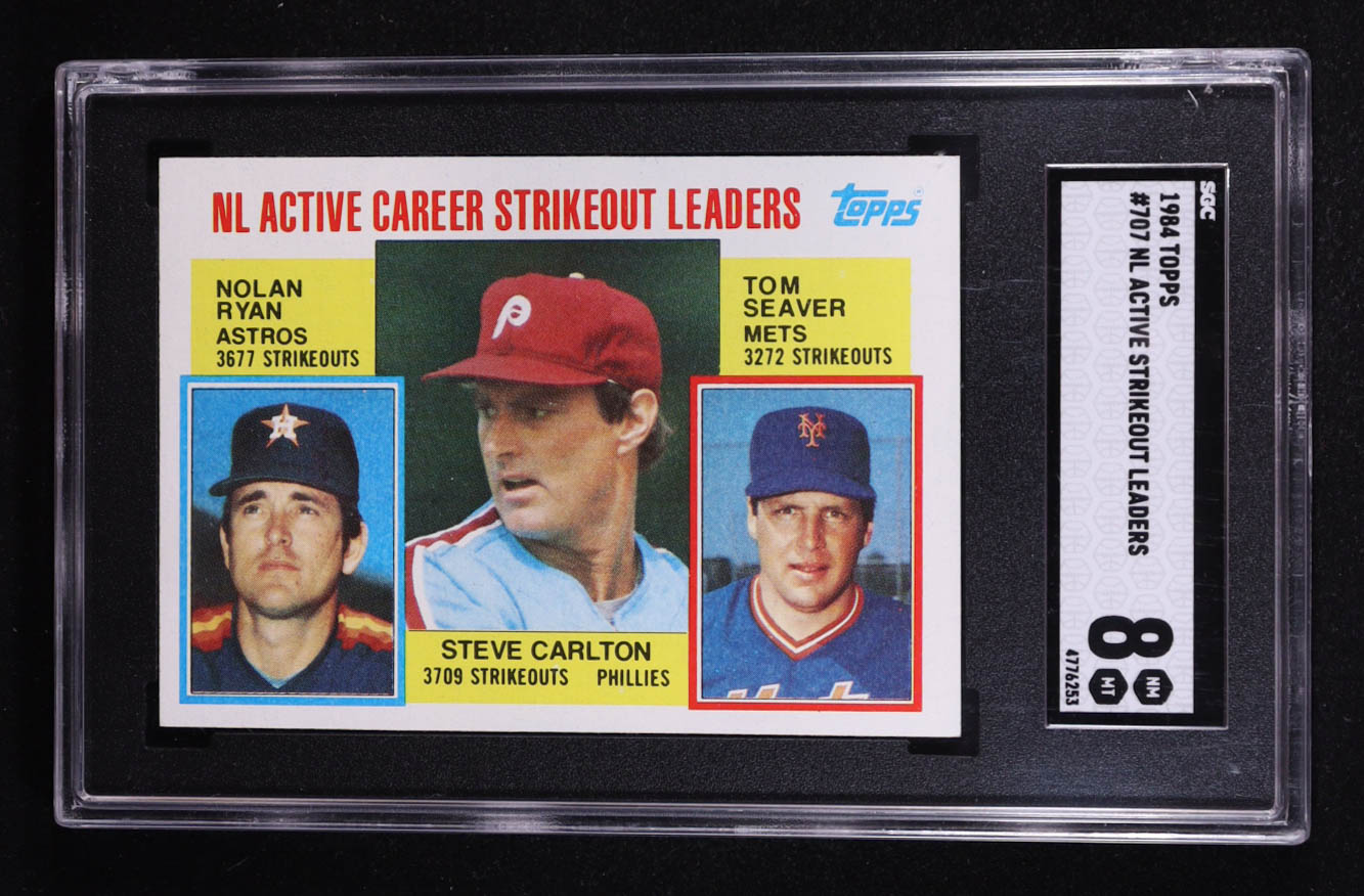 Nolan Ryan / Steve Carlton / Tom Seaver 1984 Topps NL Active Strikeout Leaders #707 (SGC 8)