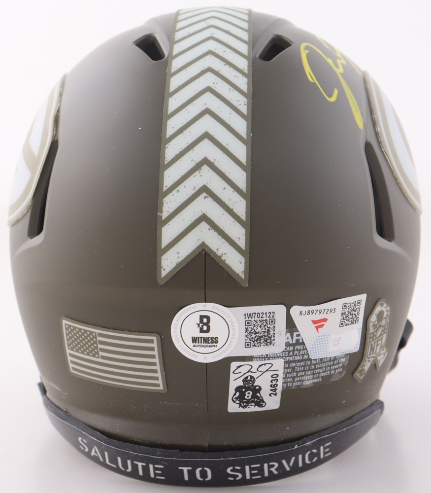 Josh Jacobs Signed Packers Salute to Service Alternate Speed Mini Helmet (Beckett, Fanatics & Jacobs)