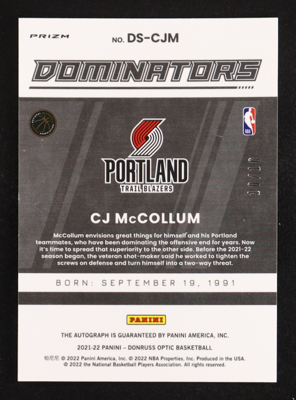 CJ McCollum 2021-22 Donruss Optic Dominators Signatures Gold #1 #10/10