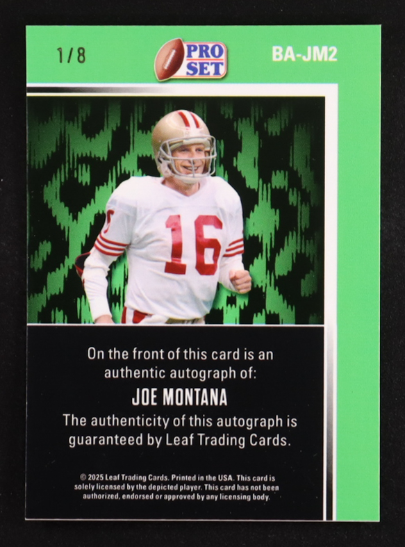 Joe Montana 2025 Leaf Pro Set Metal Autograph Crystal Purple #BA-JM2 #1/8