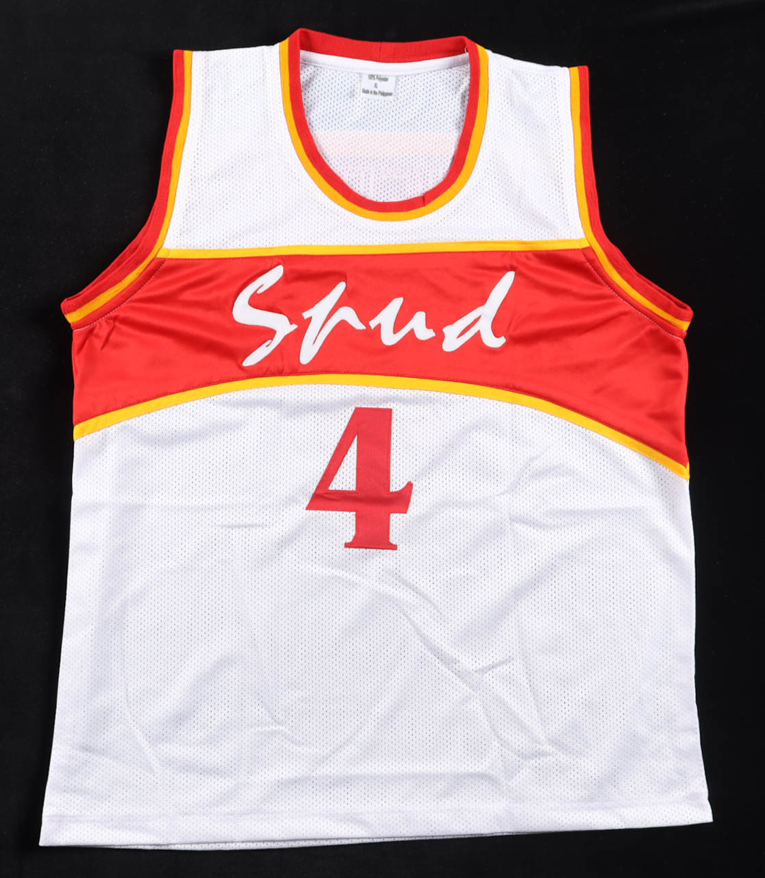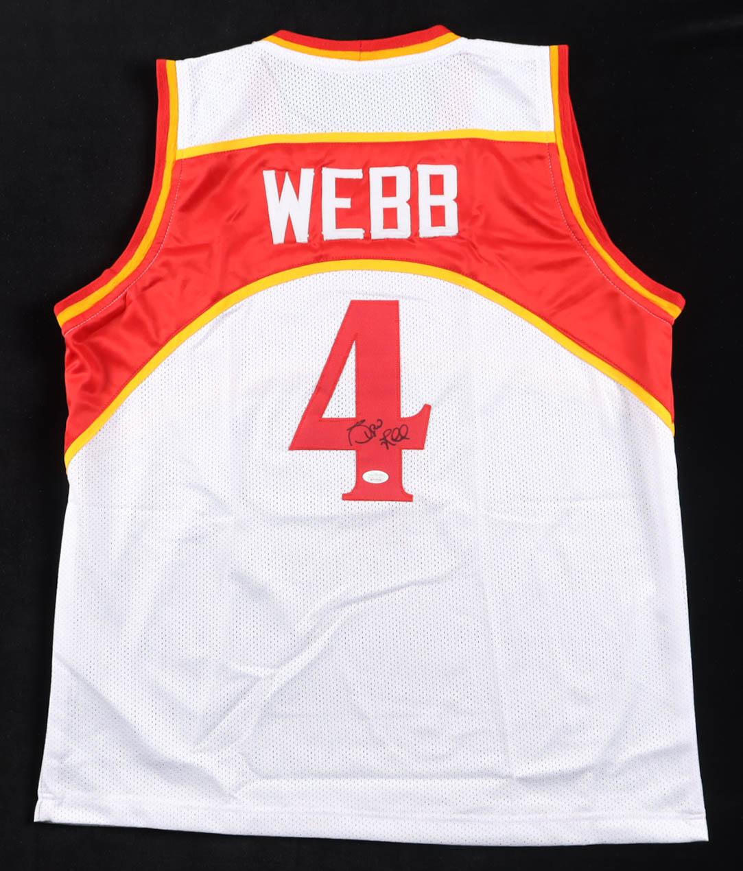 Custom jersey with everything sewn on, size XL. Hand-signed by Spud Webb (Atlanta Hawks).