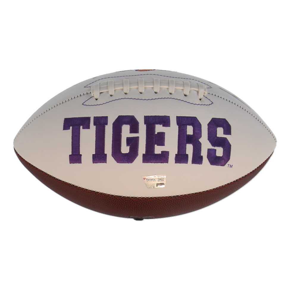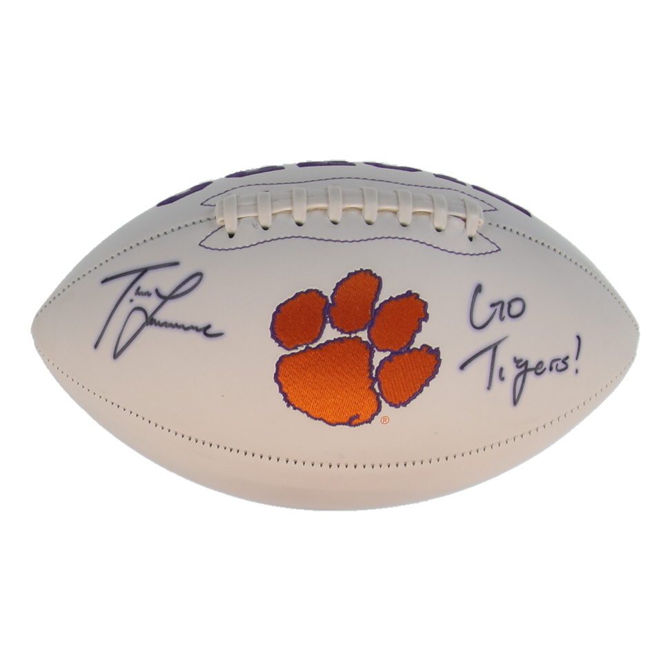 Clemson Tigers logo white panel football. Hand-signed by Trevor Lawrence. Please note, the signature ink has bled.