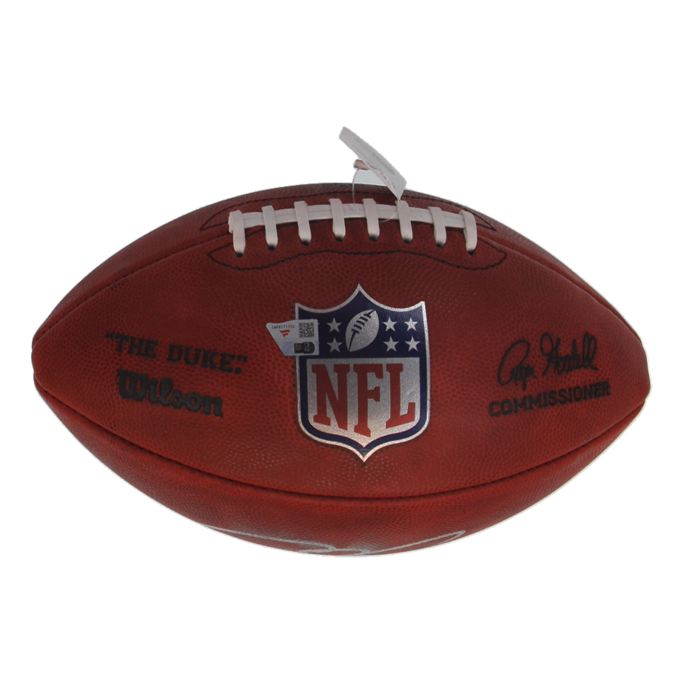 Wilson "The Duke" NFL football. Hand-signed by Tom Brady (New England Patriots). Please note the smudged signature.