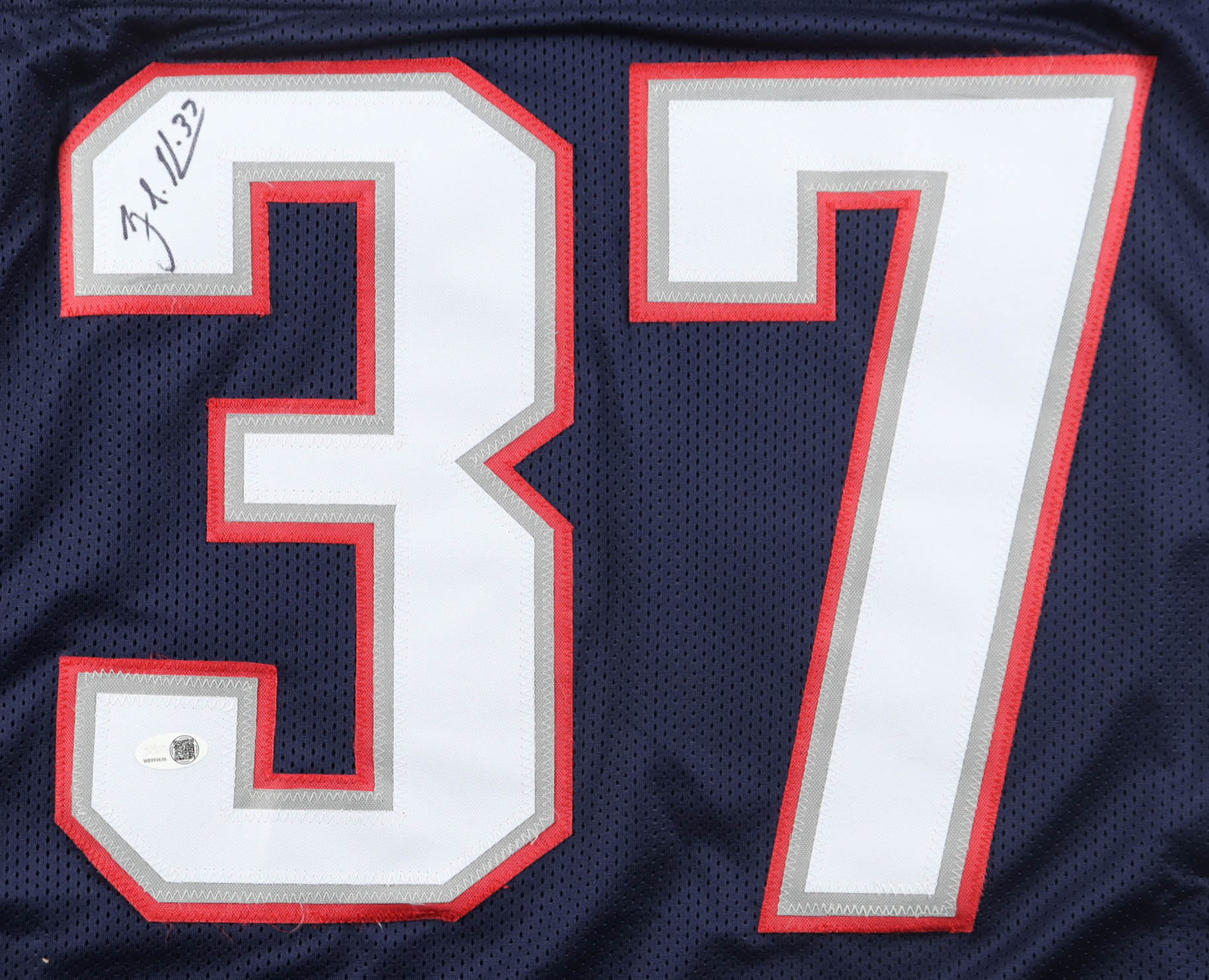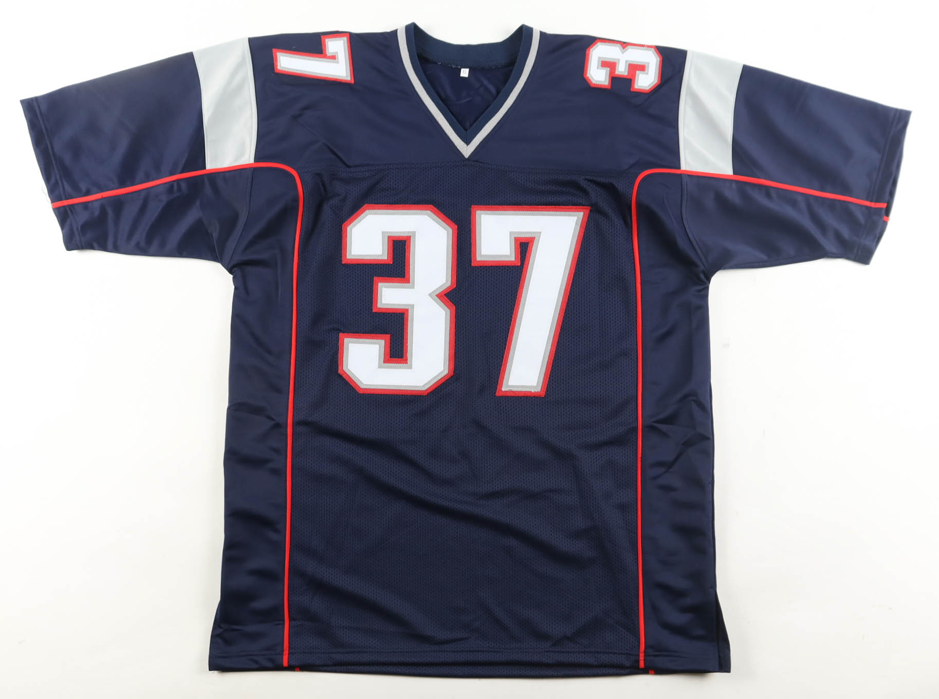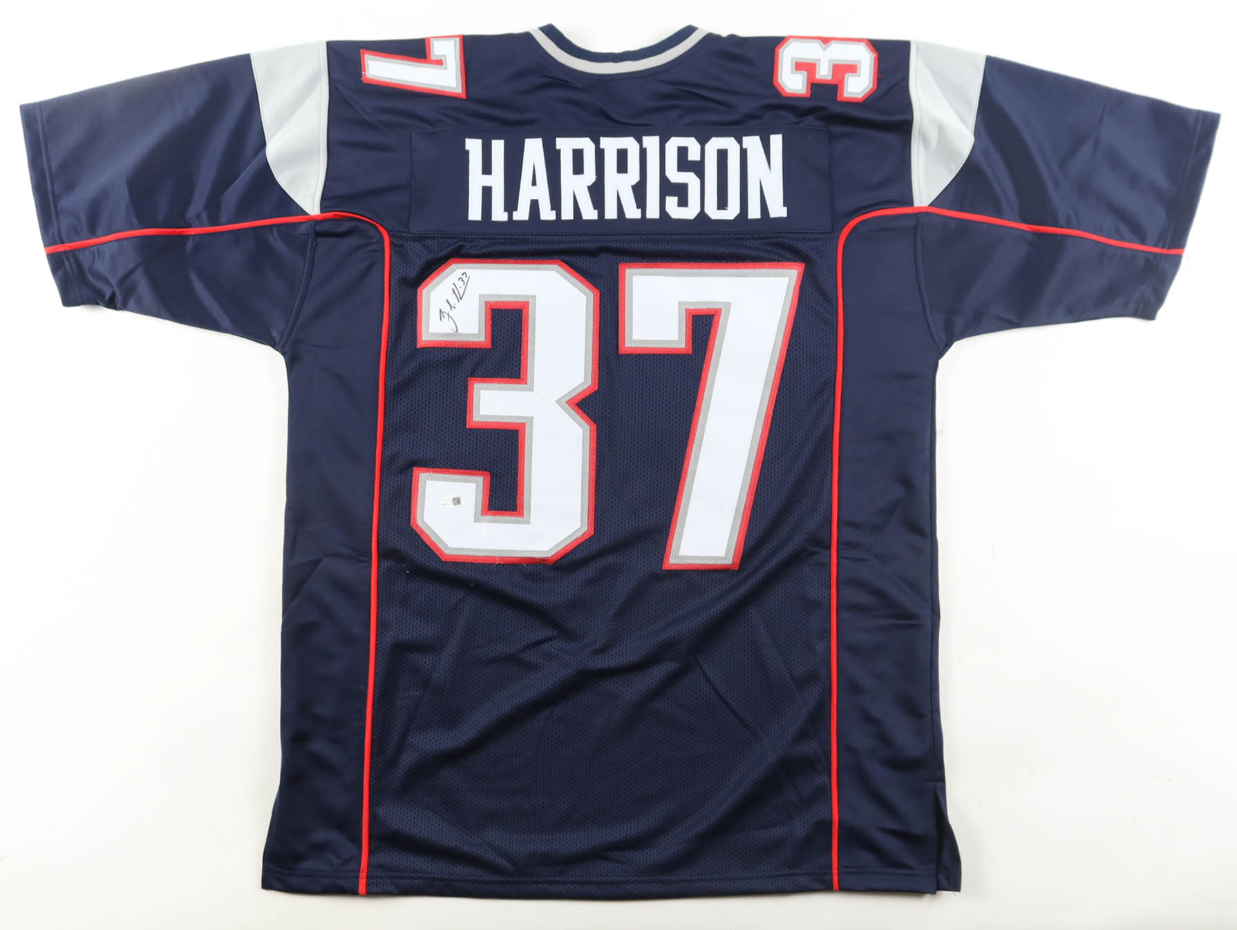 Custom jersey. Everything is sewn on, size XL. Hand-signed by Rodney Harrison.