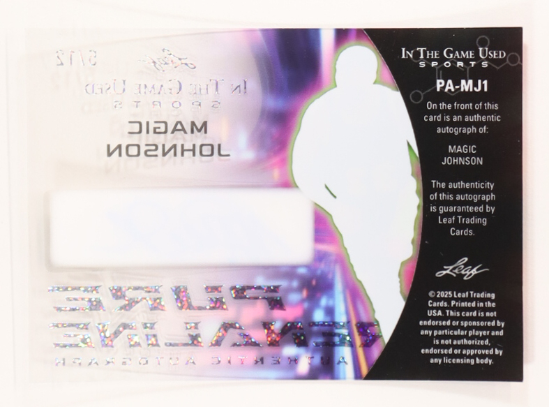 Magic Johnson 2025 Leaf In The Game Used Pure Adrenaline Autographs Glitter Holo #Pa-MJ1 #5/12