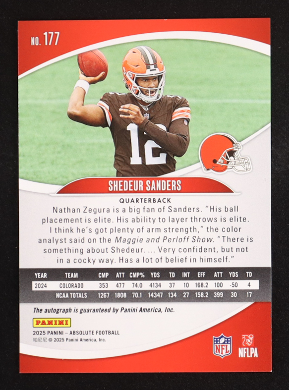 Shedeur Sanders 2025 Absolute Signatures #177 RC