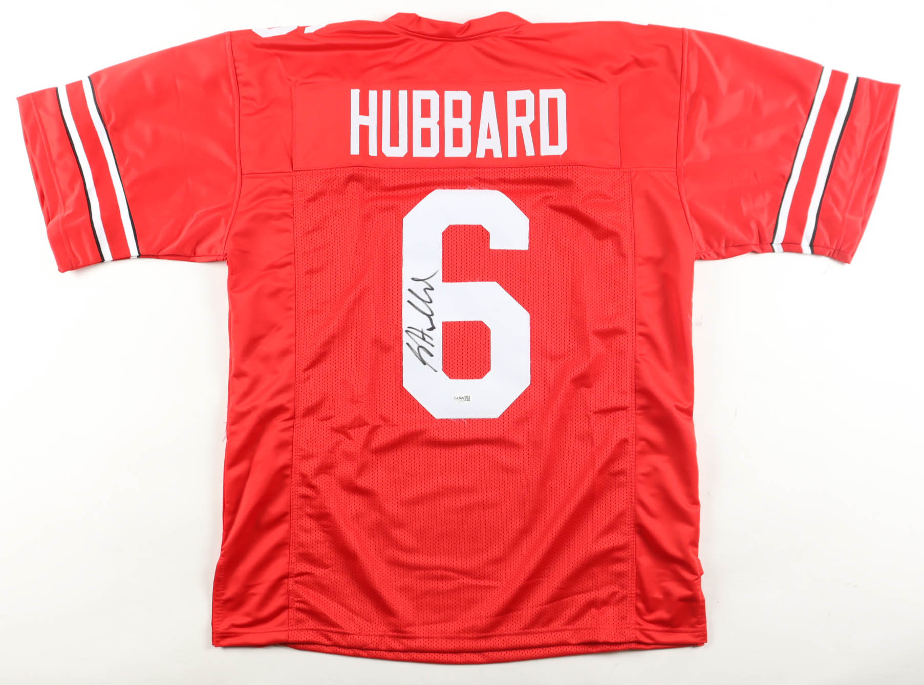 Custom jersey with everything sewn on, size XL. Hand-signed by Sam Hubbard.