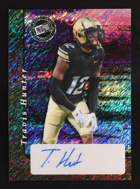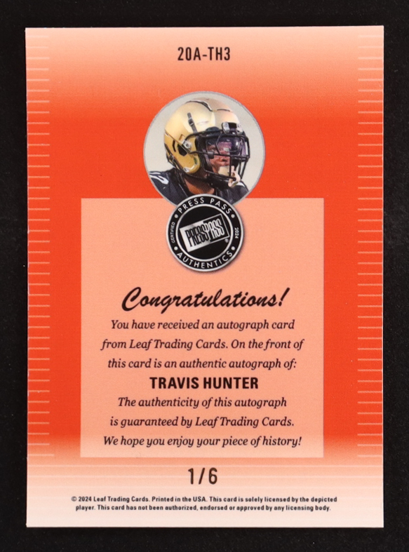 Travis Hunter 2024 Leaf Collective Promos '00 Press Pass Autograph Black Shimmer #20A-TH3 #1/6