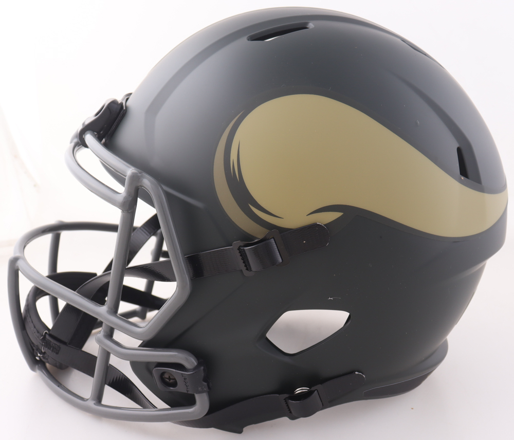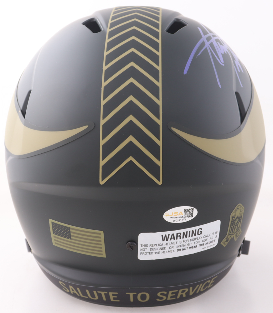 Riddell Minnesota Vikings Full-Size Salute to Service Alternate replica speed helmet. Hand-signed by Adrian Peterson.