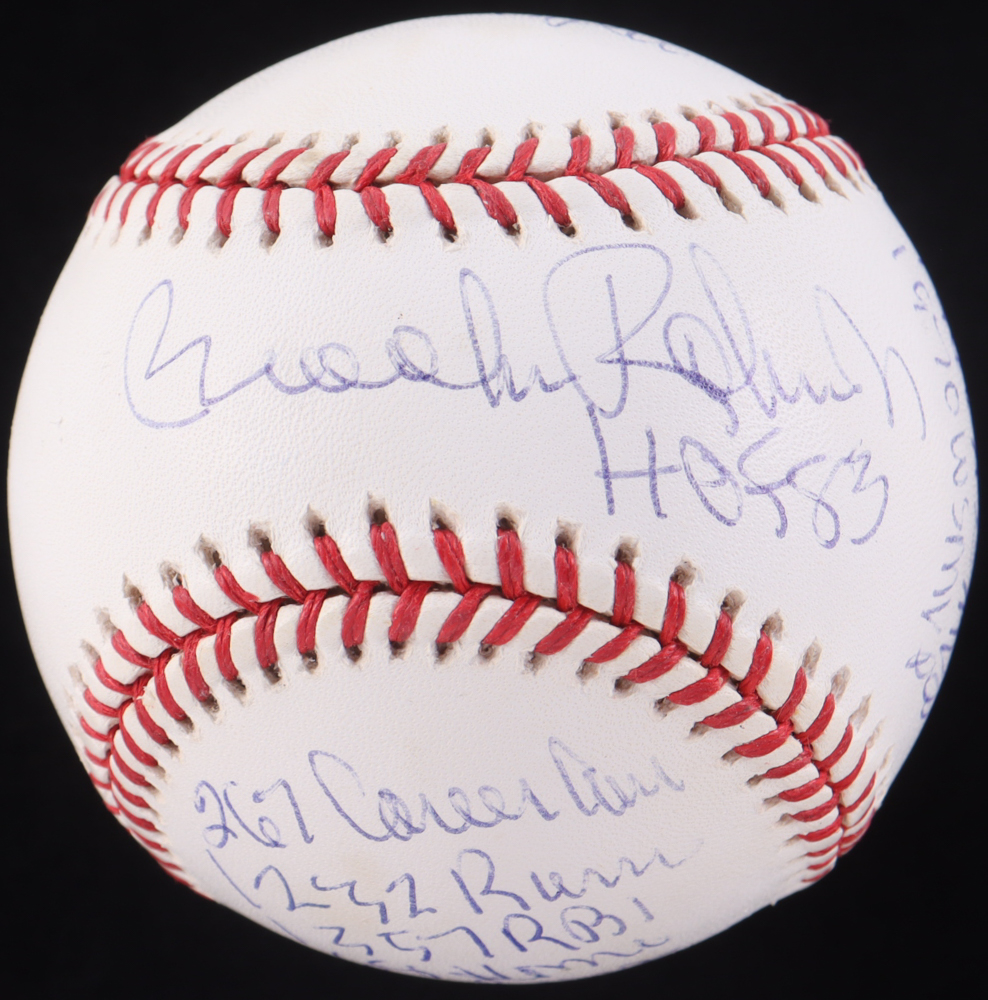 Rawlings Official National League Baseball. Hand-signed and inscribed by Brooks Robinson (D. 2023, Baltimore Orioles, HOF). Please refer to photos regarding the condition of the item.