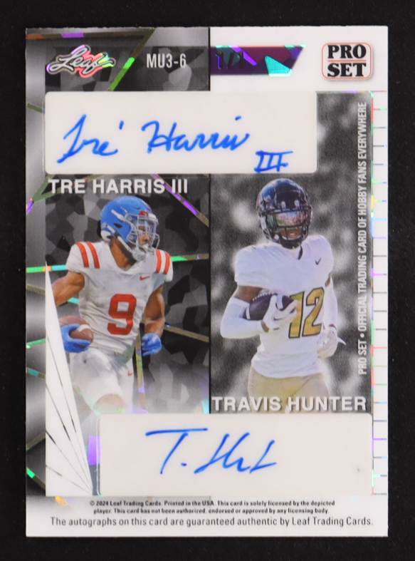 Tetairoa McMilian / Tre Harris III / Travis Hunter 2024 Leaf Collective Pro Set Multi Mash-Up Autograph White Crystal #MU3-6 #1/1